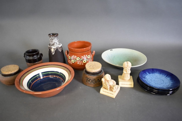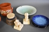 16334. Parti keramik bla skålar, krus och tobasksburk, högsta höjd 22 cm