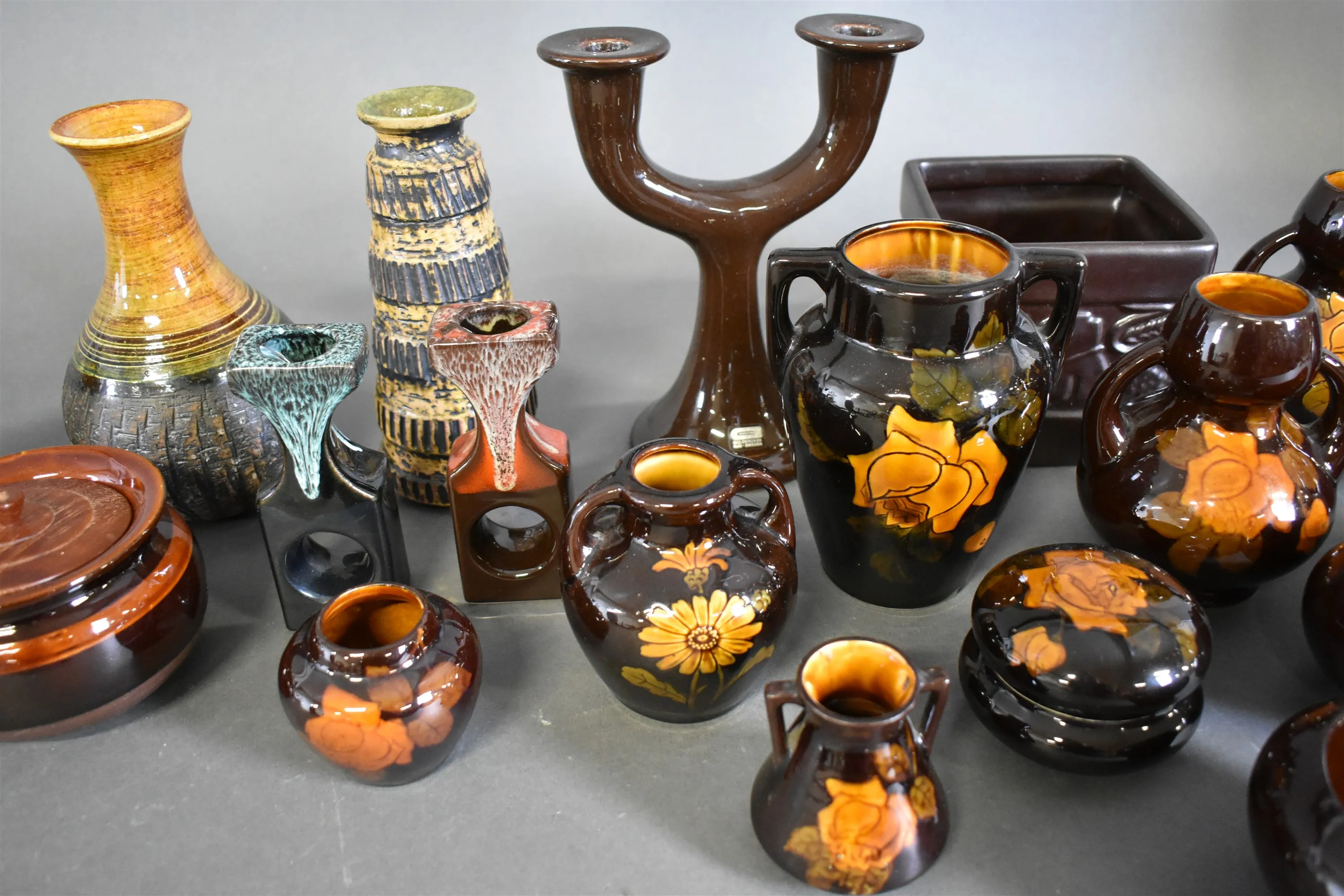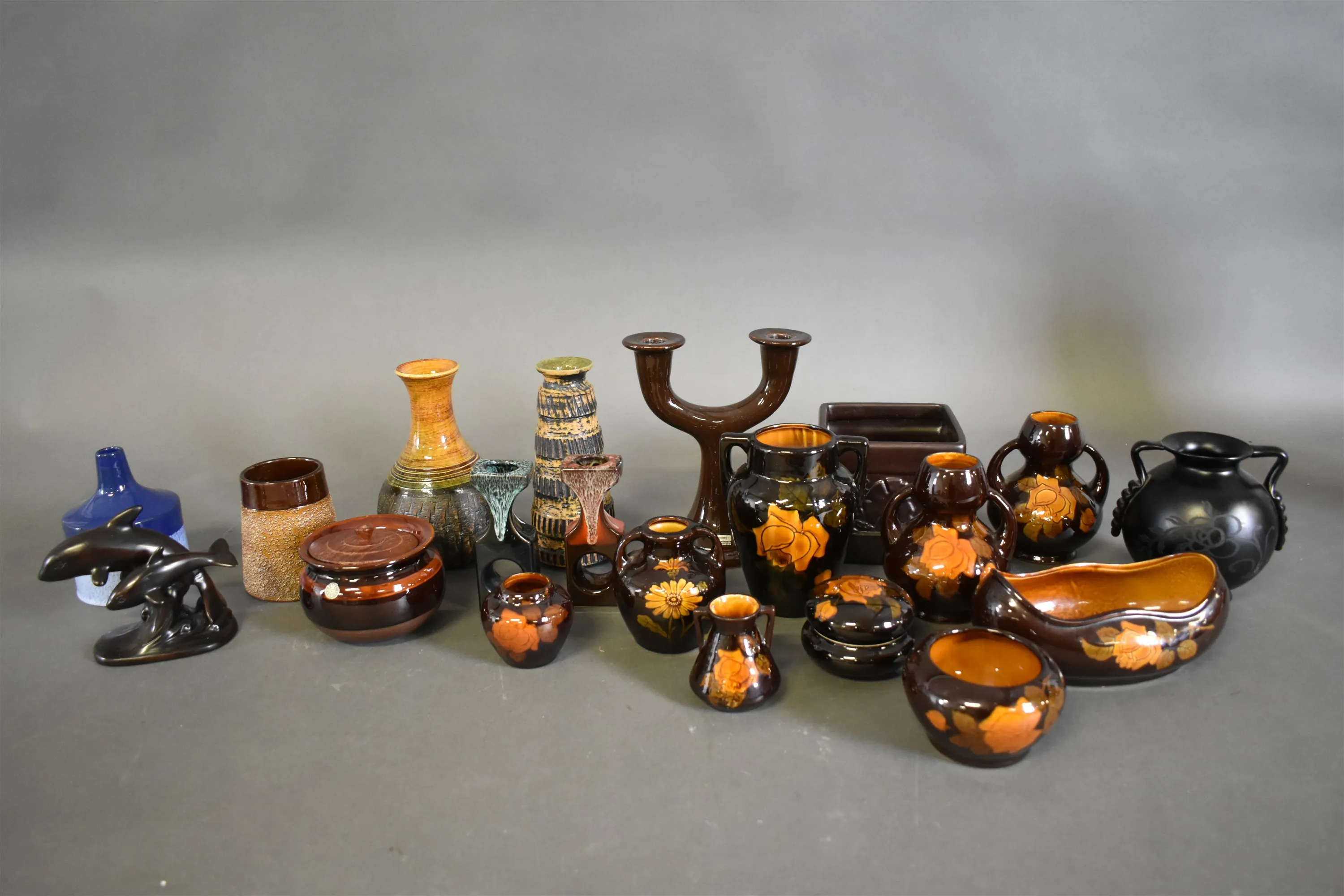 16127. Parti keramik bla vaser, högsta höjd 22 cm