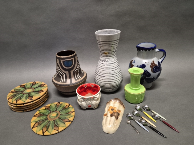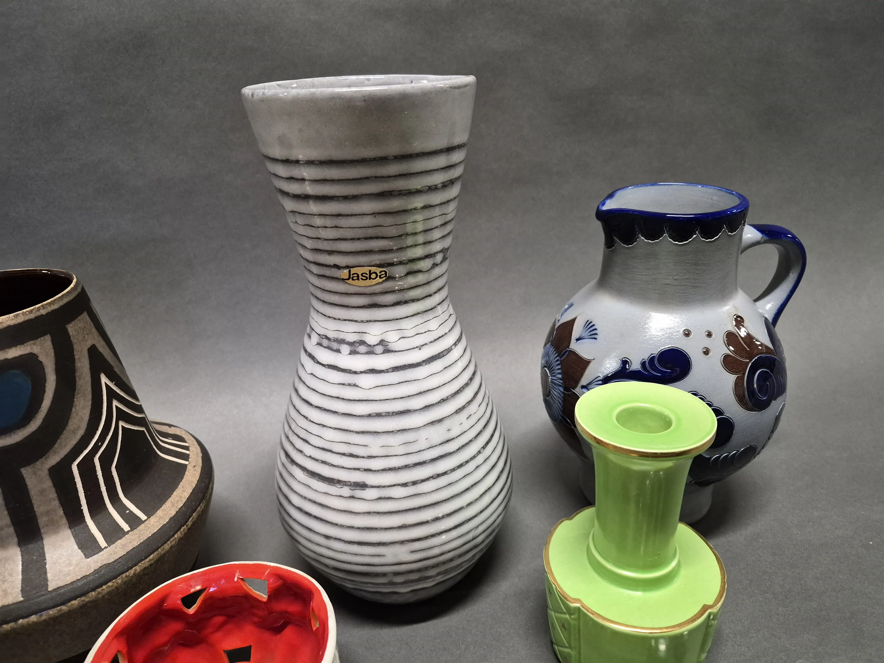 17020. Parti keramik bla vaser och ljusstakar, retro, högsta höjd 29 cm