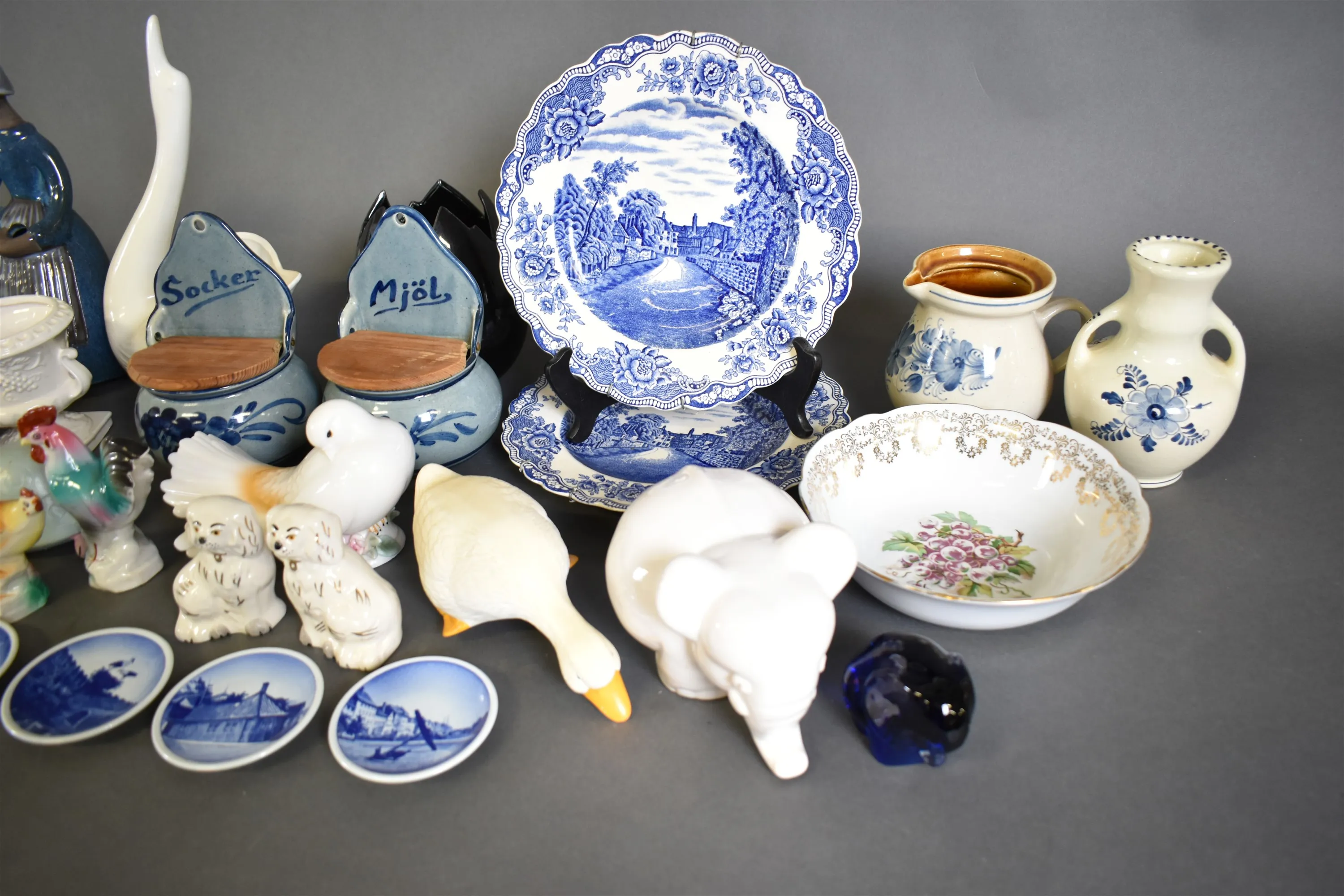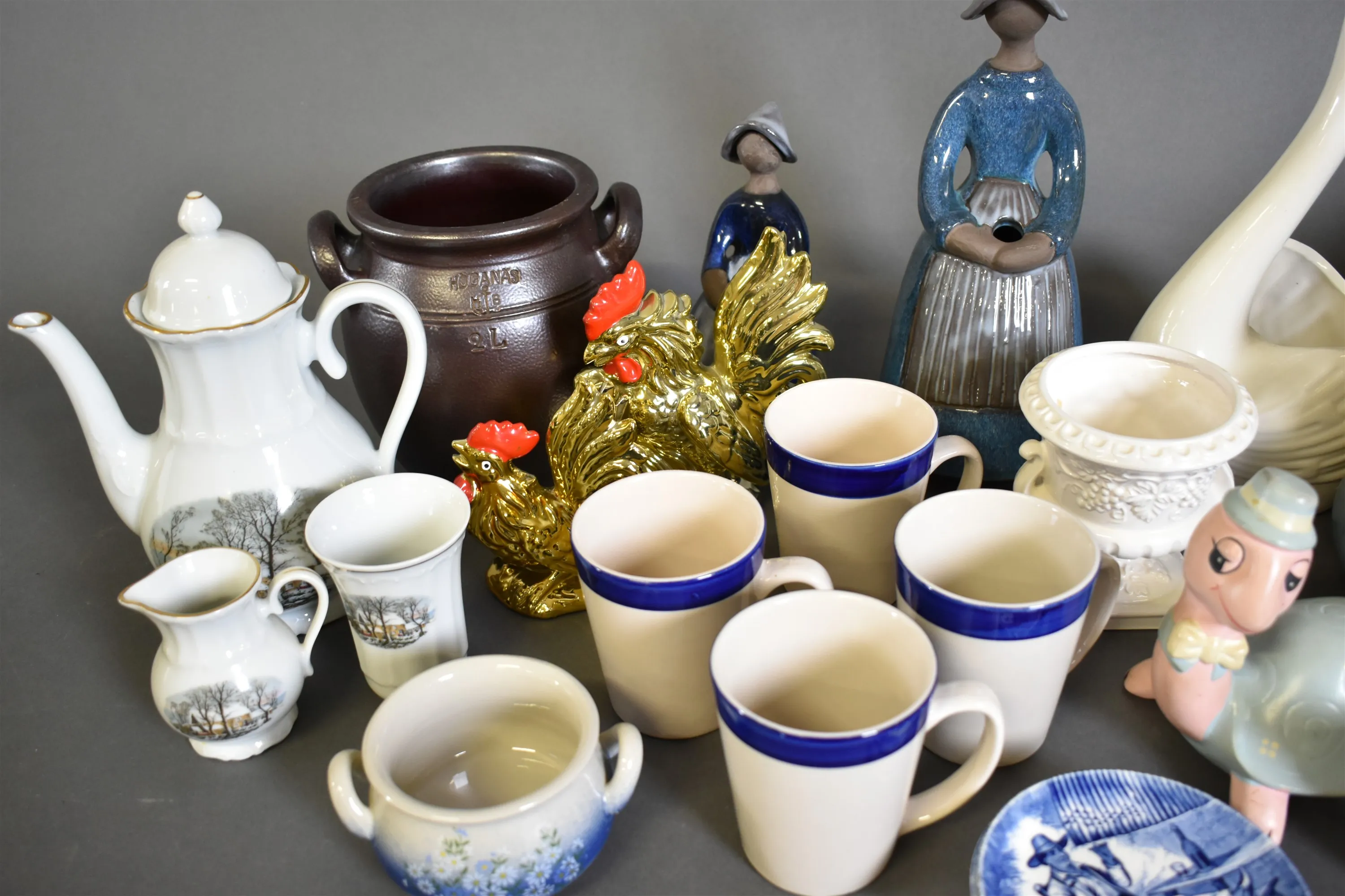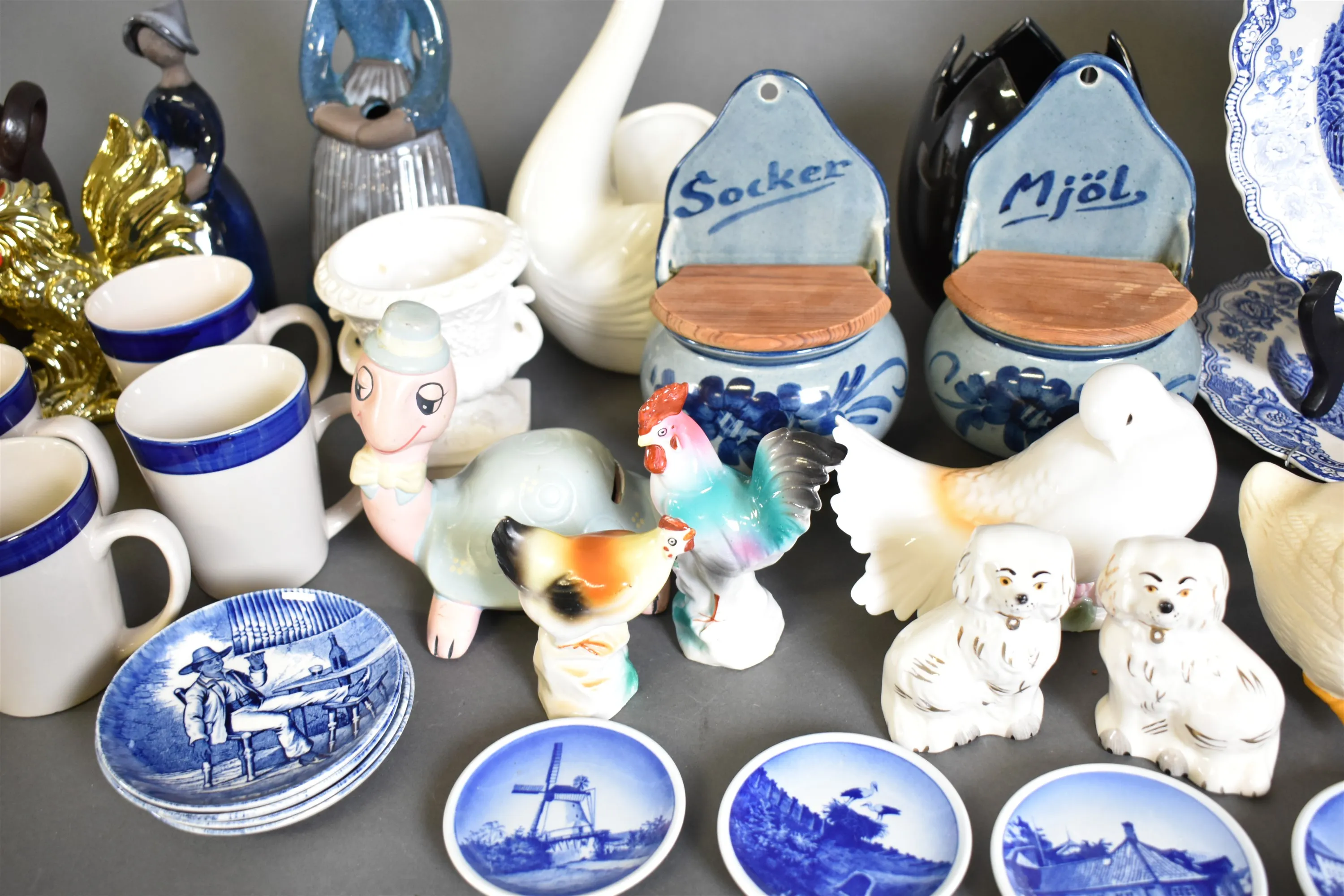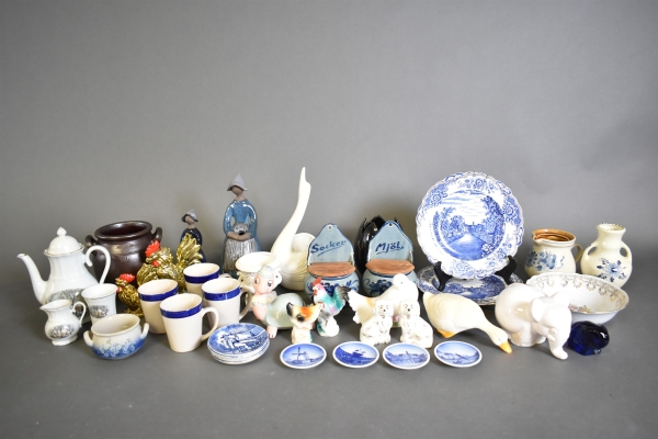 11960. Parti keramik och porslin bla figuriner, krus Höganäs och fat, högsta höjd 30 cm