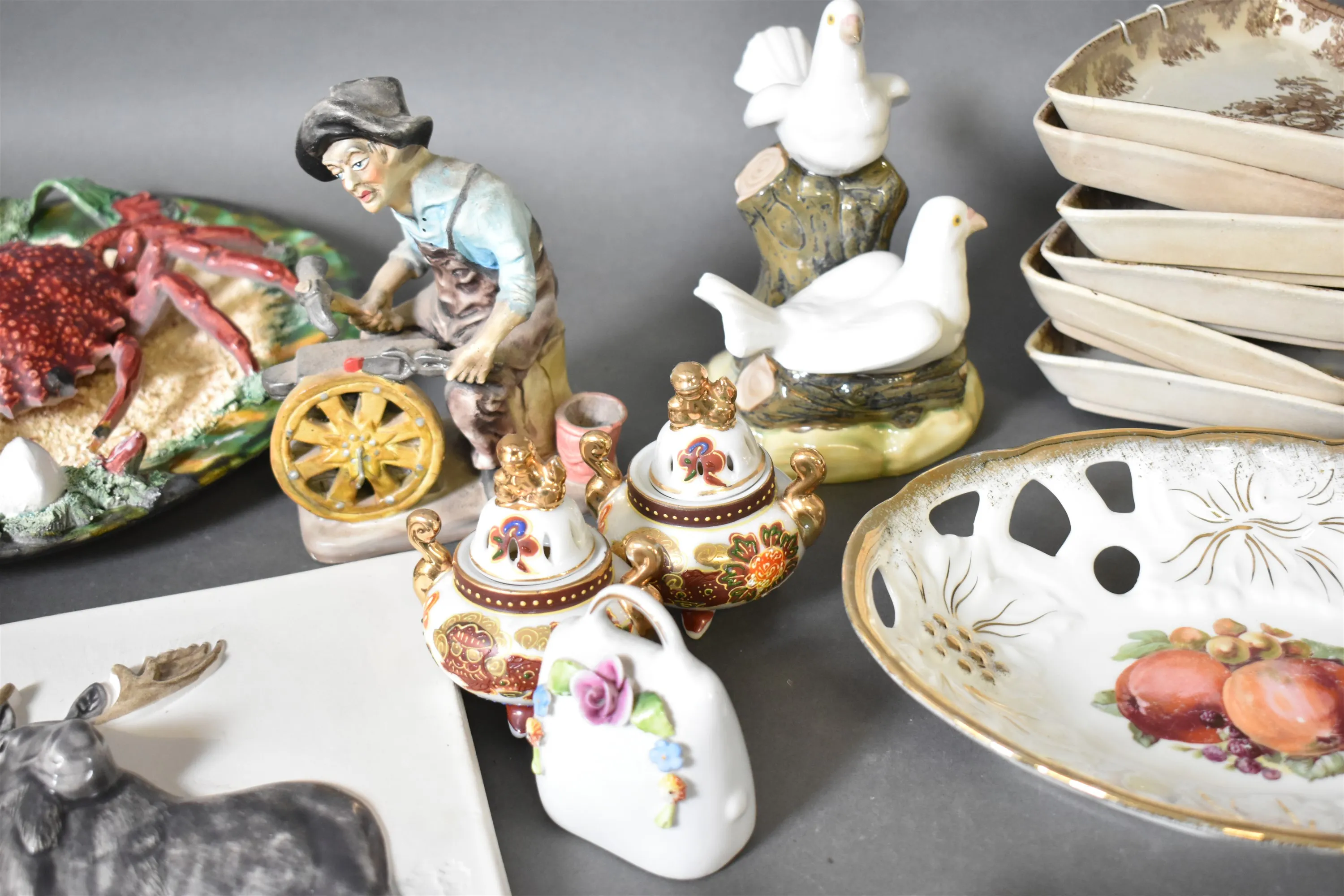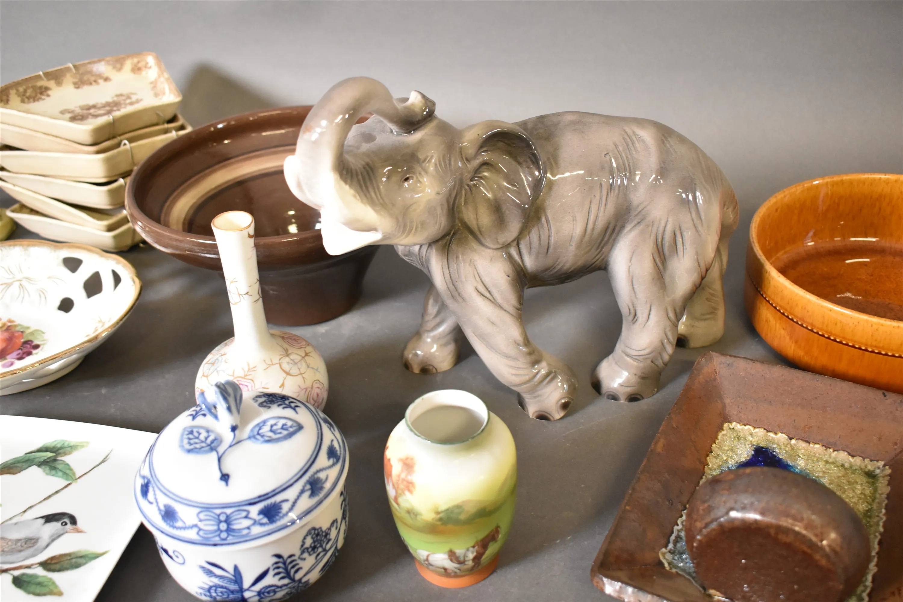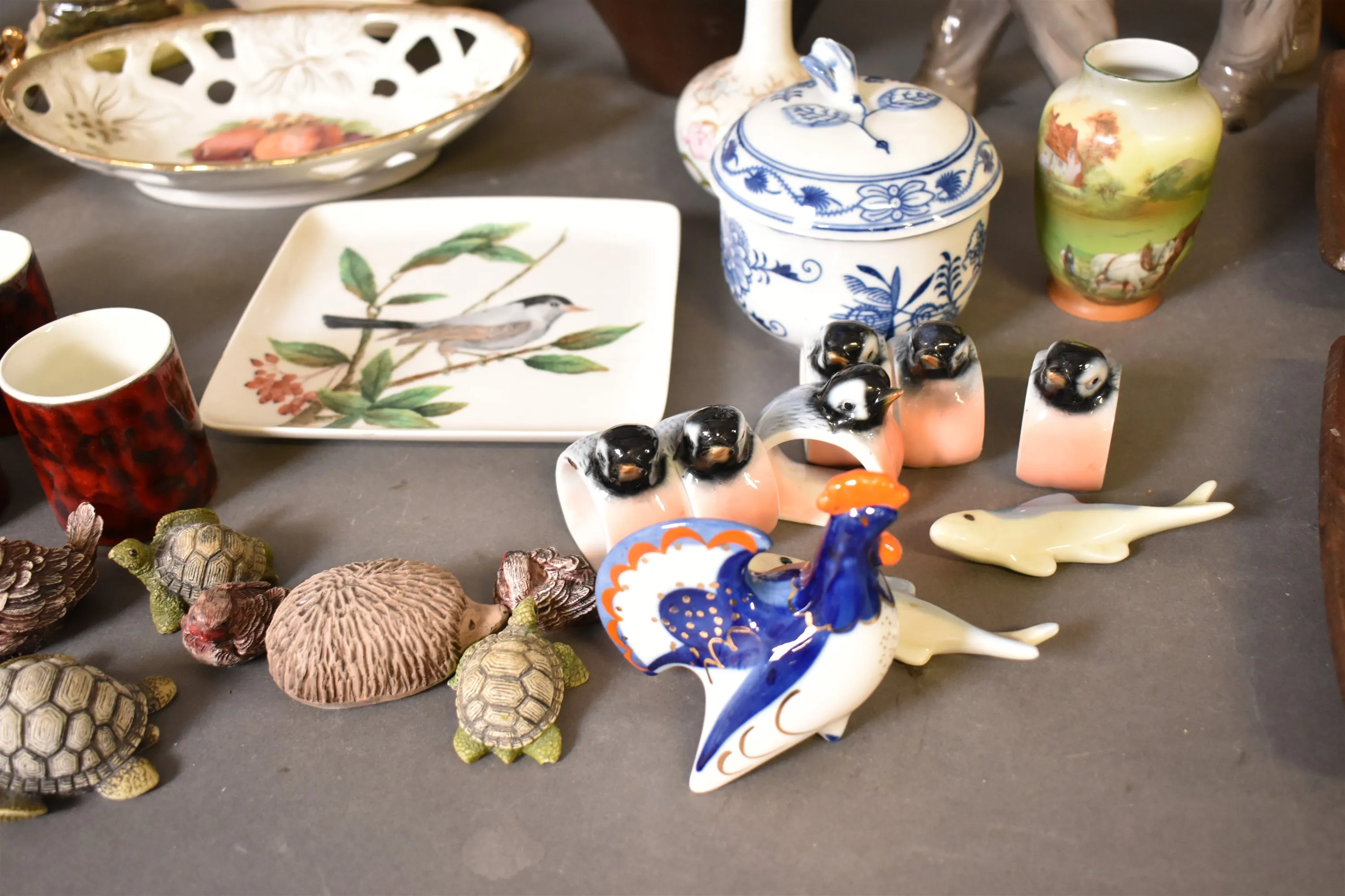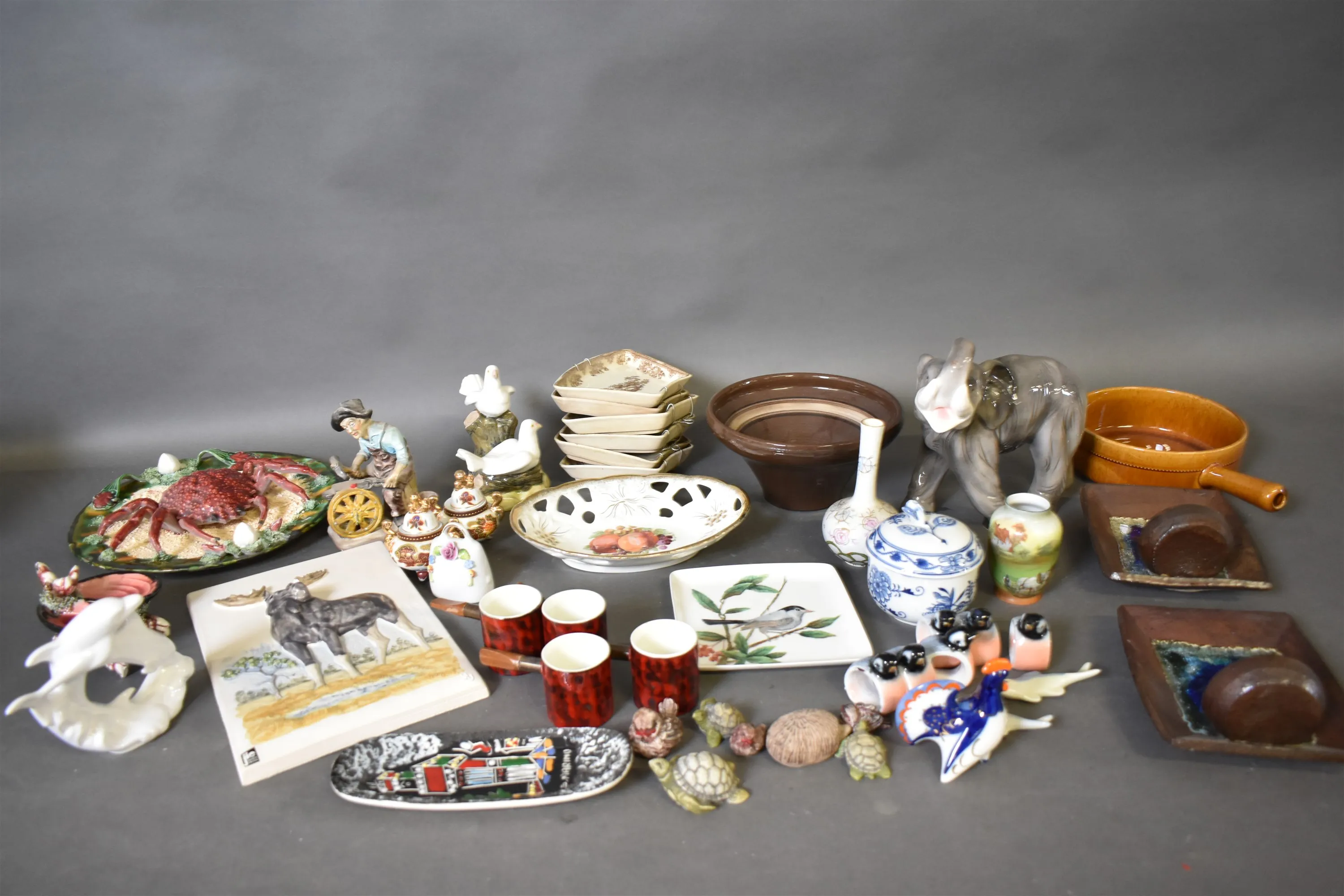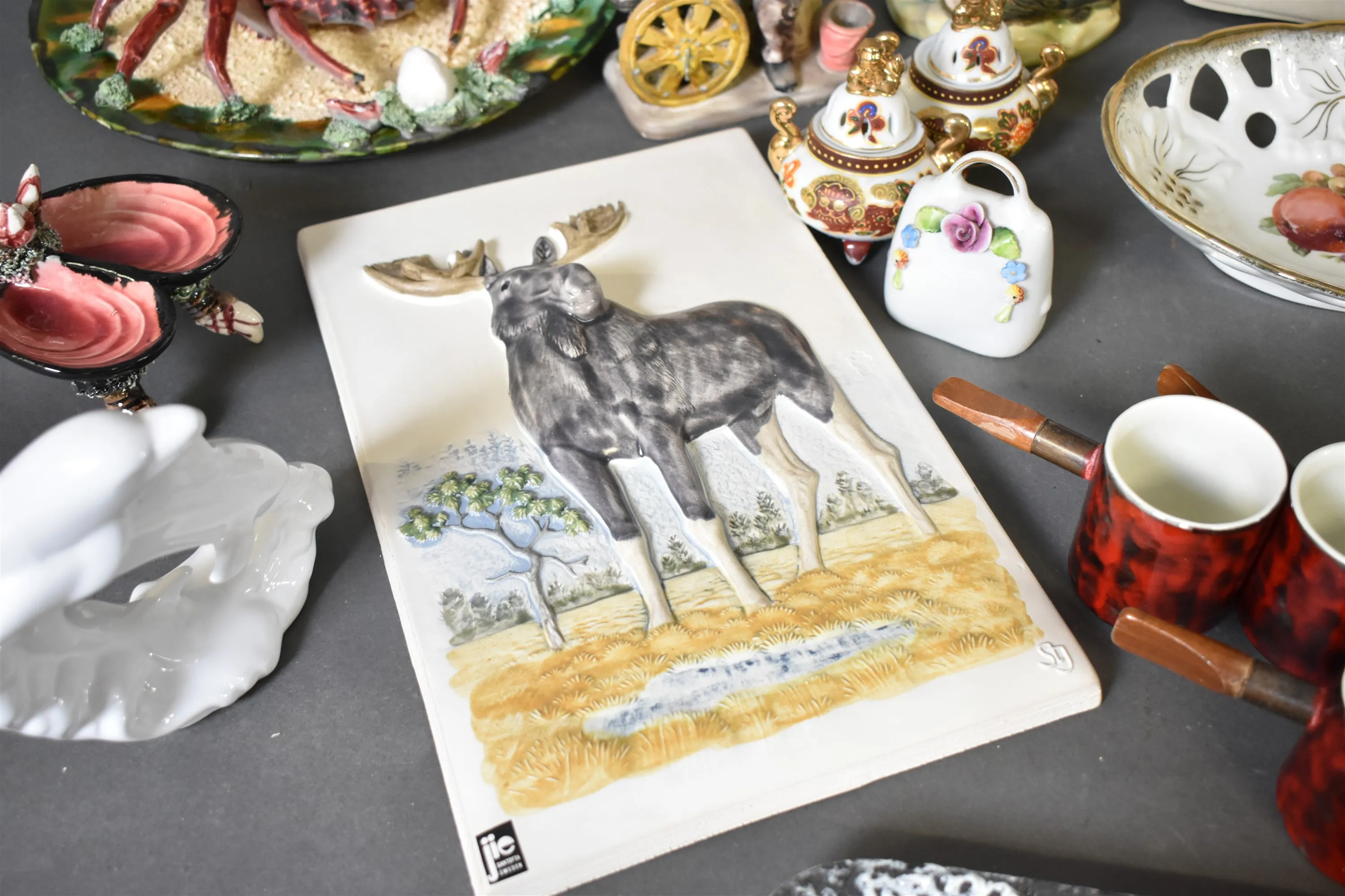 16590. Parti keramik och porslin bla figuriner, servettringar och keramiktavla, högsta höjd 25 cm, 2 lådor