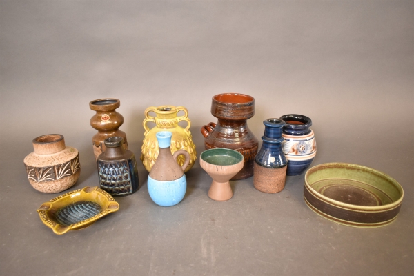 10452. Parti keramik, retro bla vaser och kannor, högsta höjd 20 cm