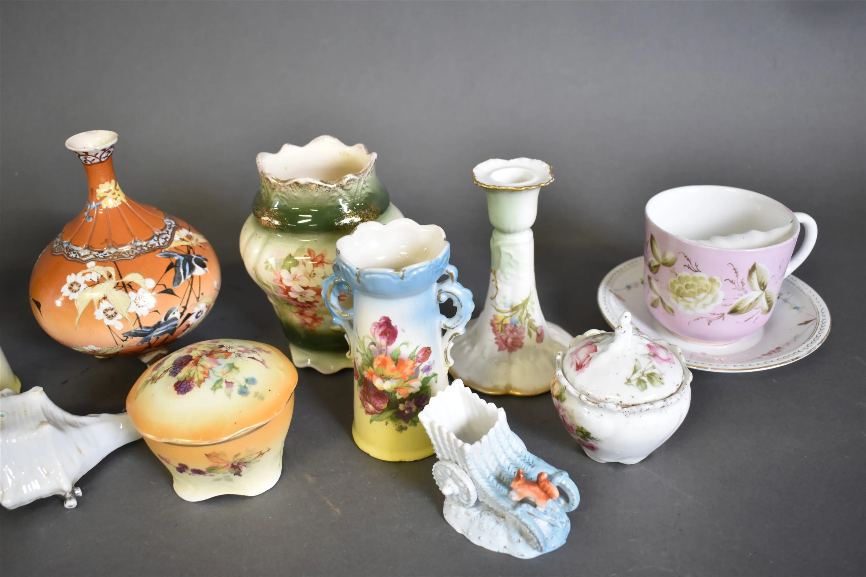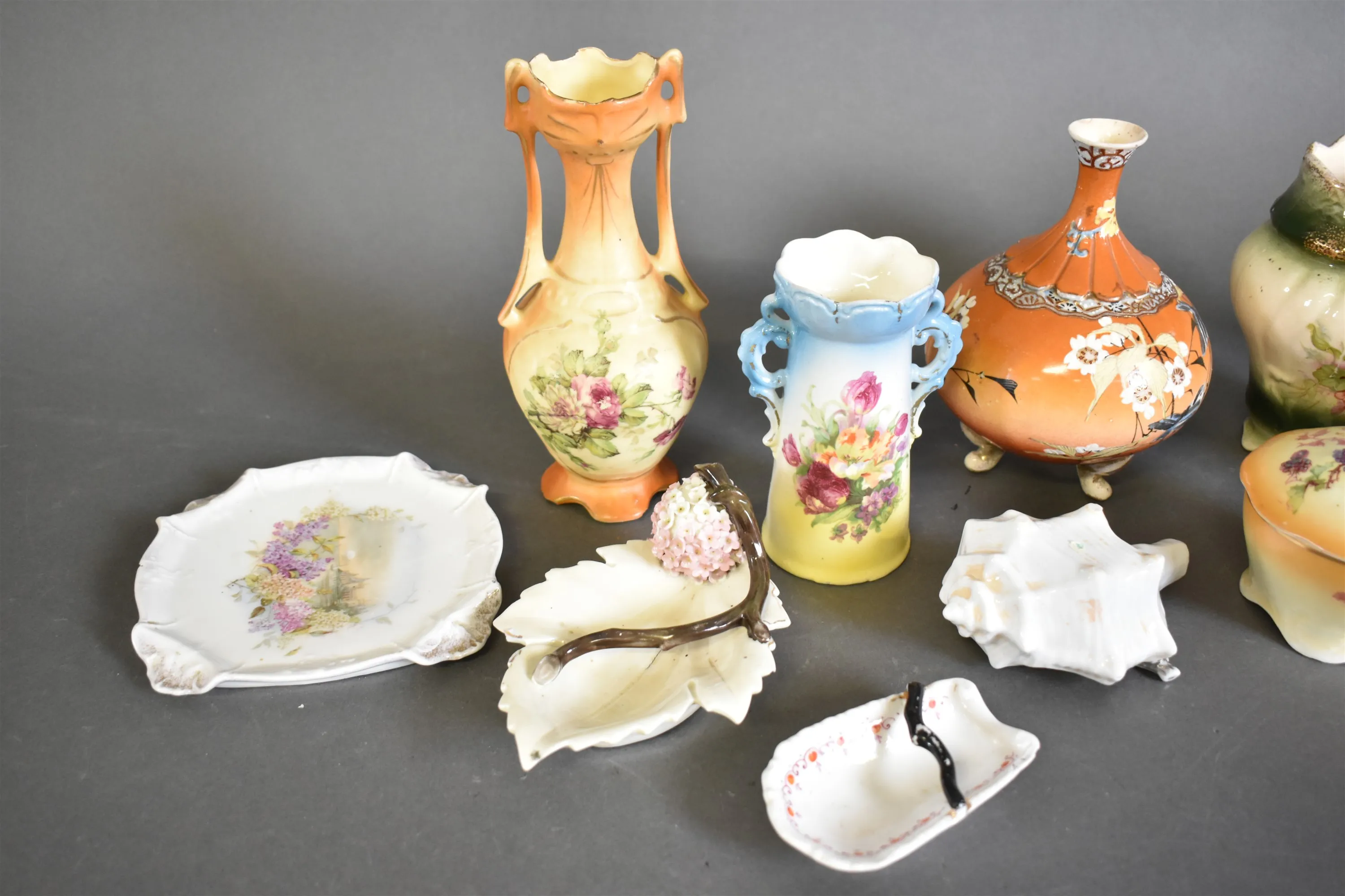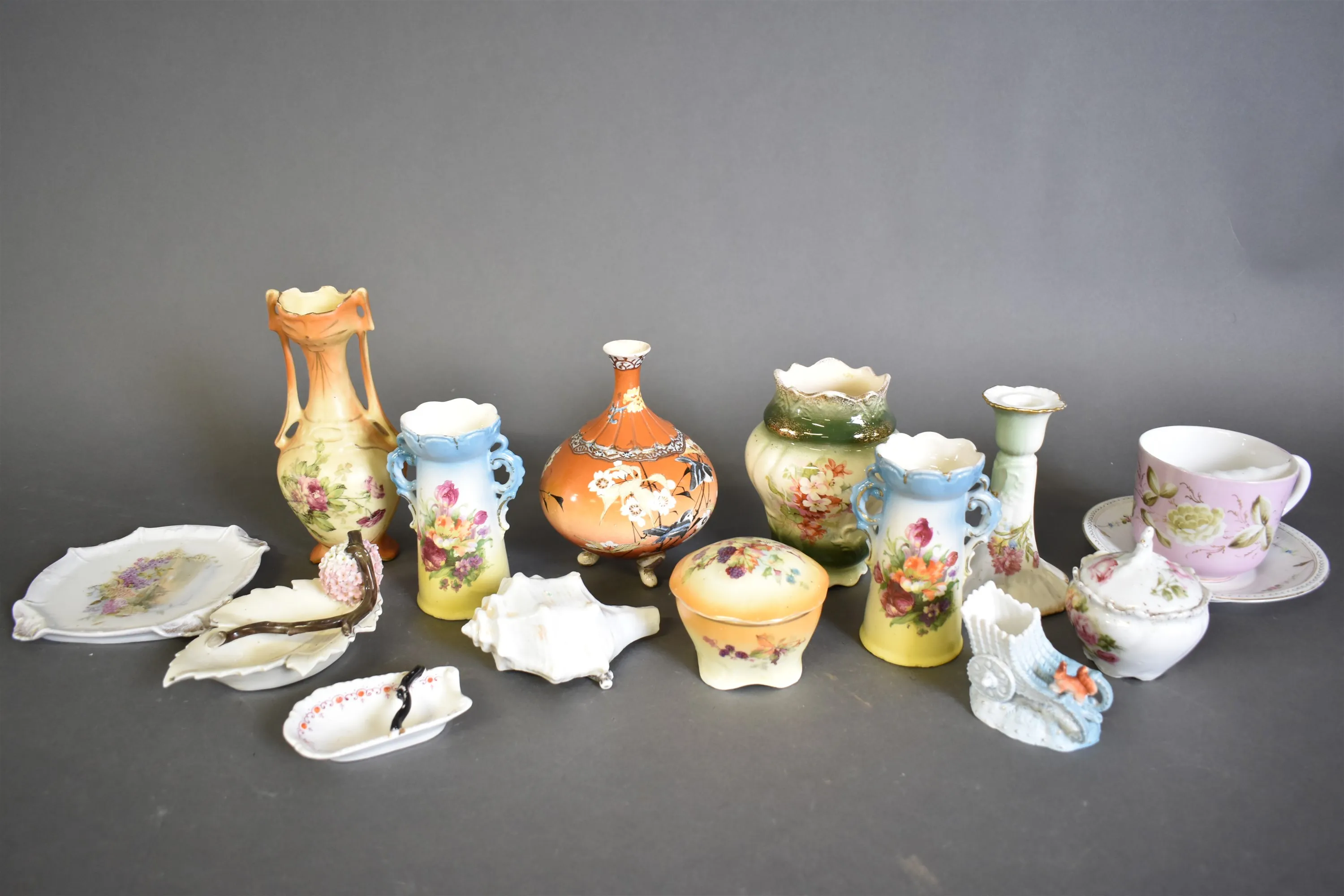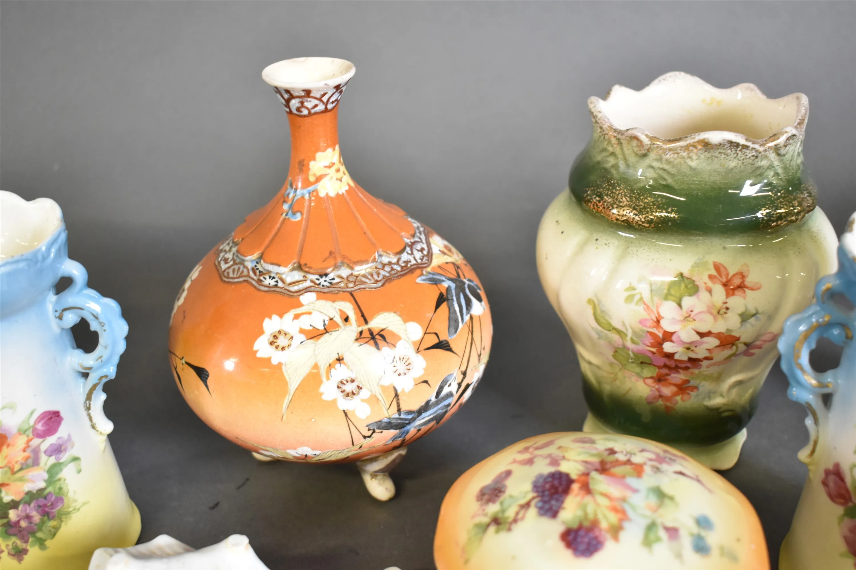 12865. Parti keramik/porslin bla vaser, tidigt 1800-tal/sent 1900-tal, högsta höjd 21 cm