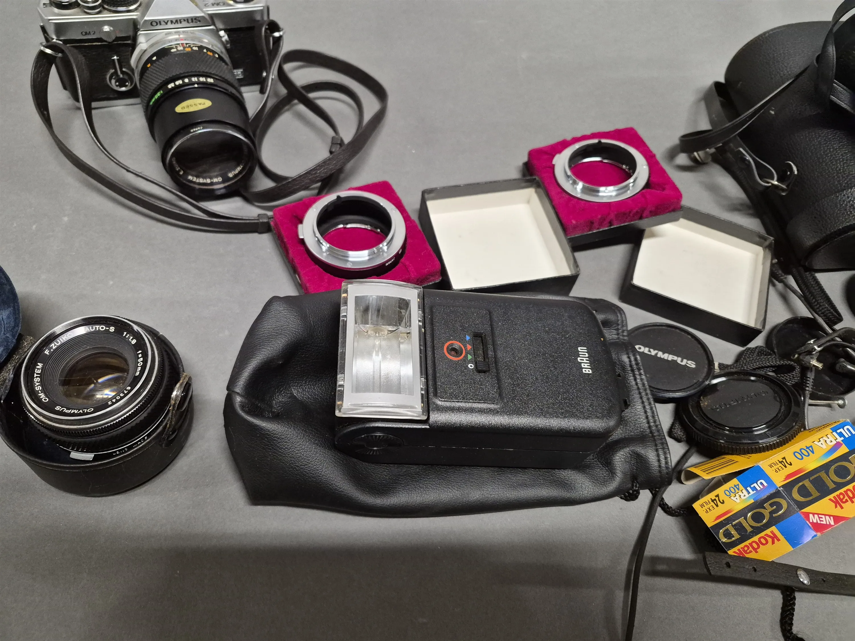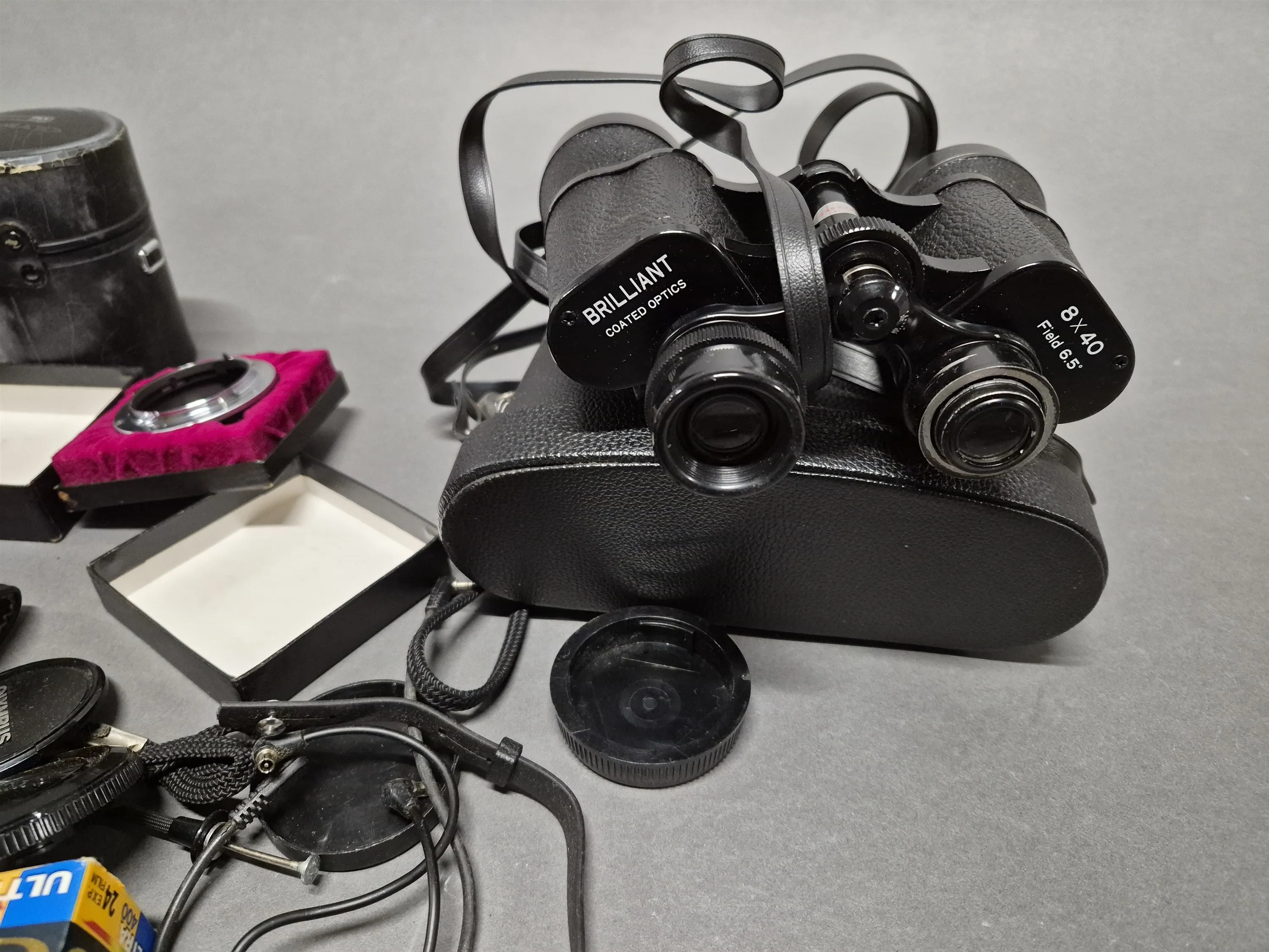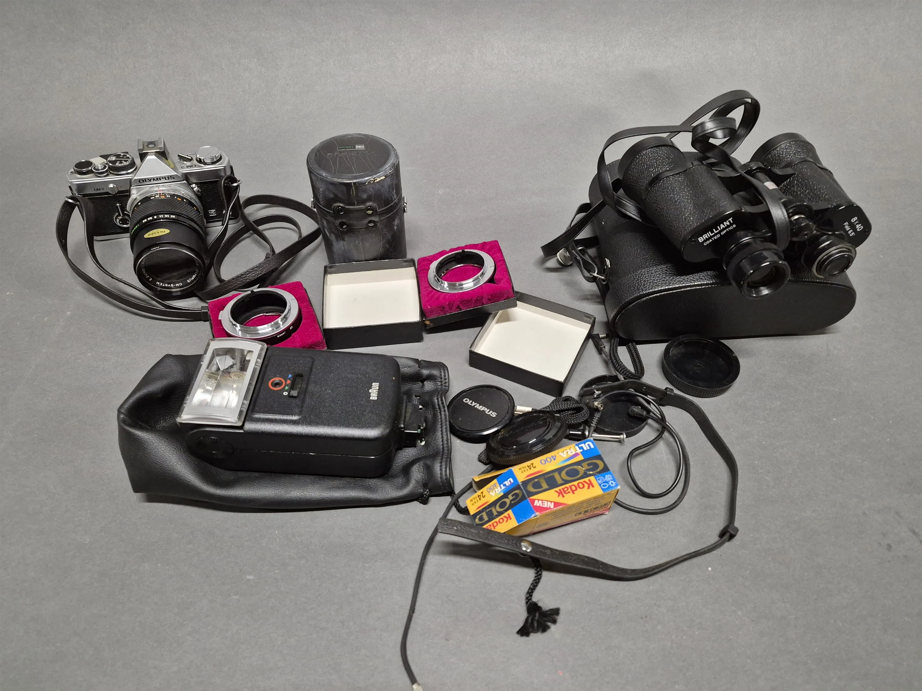 18149. Parti Kikare Brilliant & Kamera med tillbehör Olympos