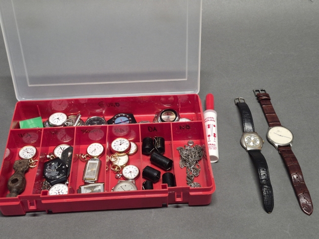 19571. Parti klockdelar och tillbehör