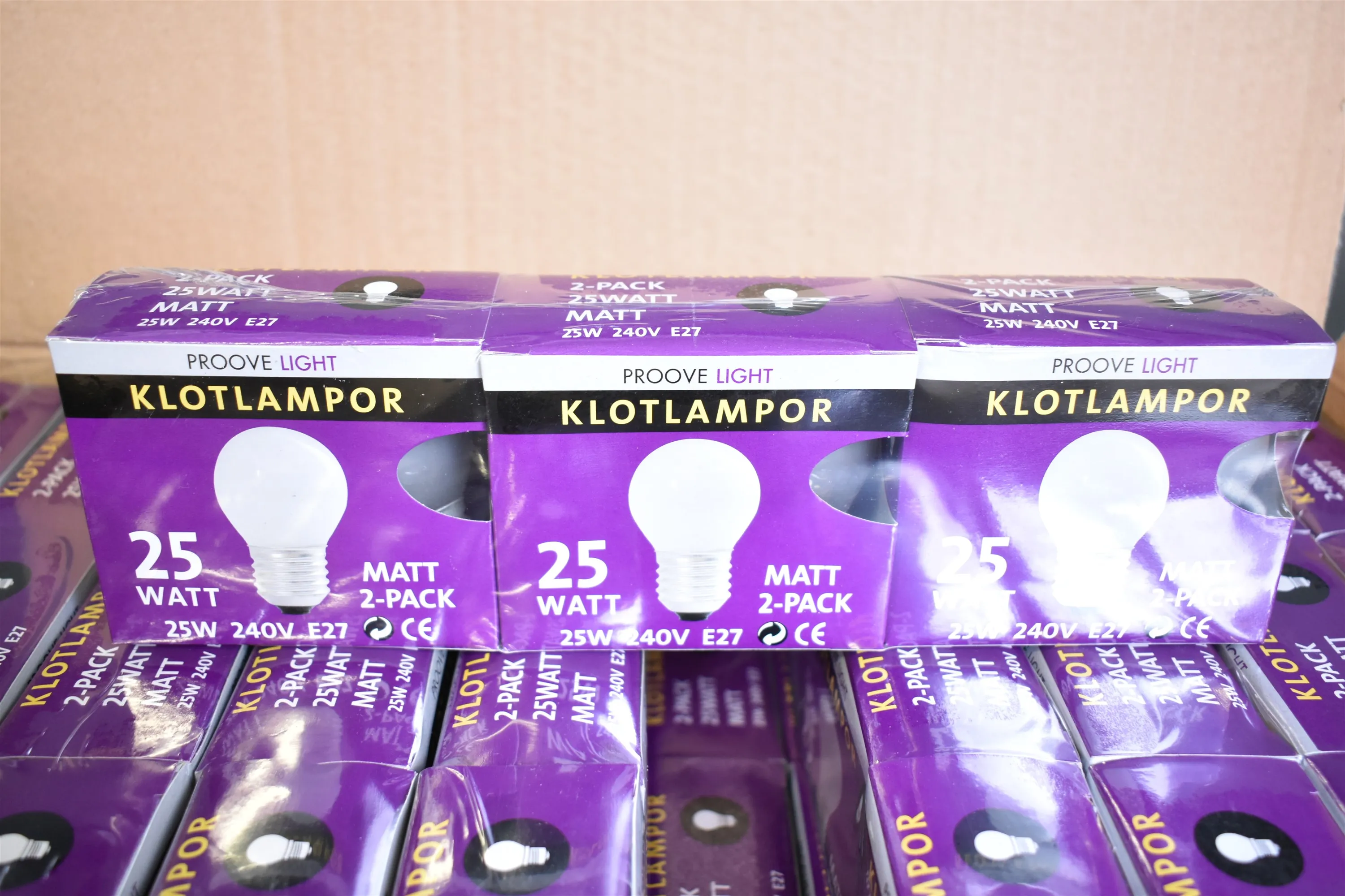 10206. Parti klotlampor 25W 240V E27, 60 st förpackningar