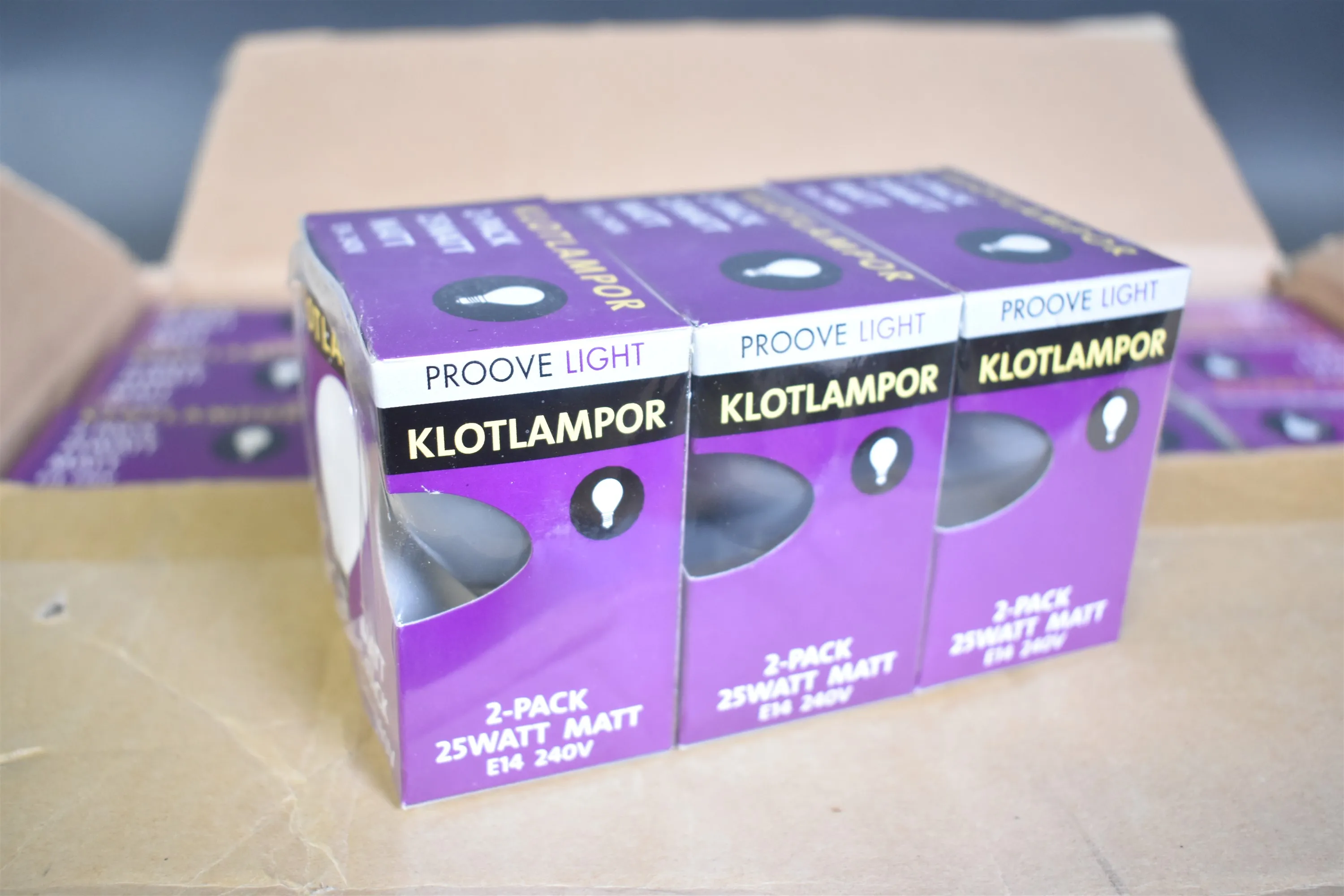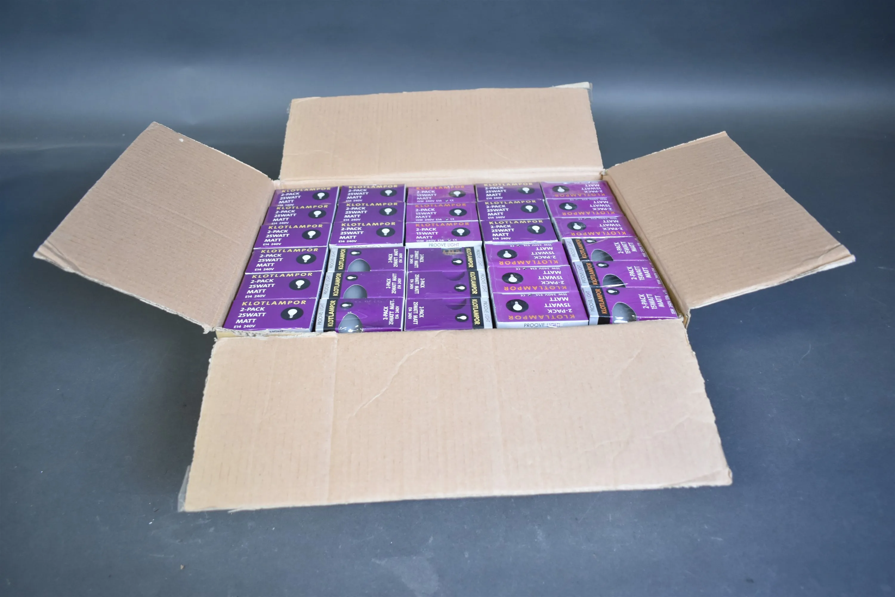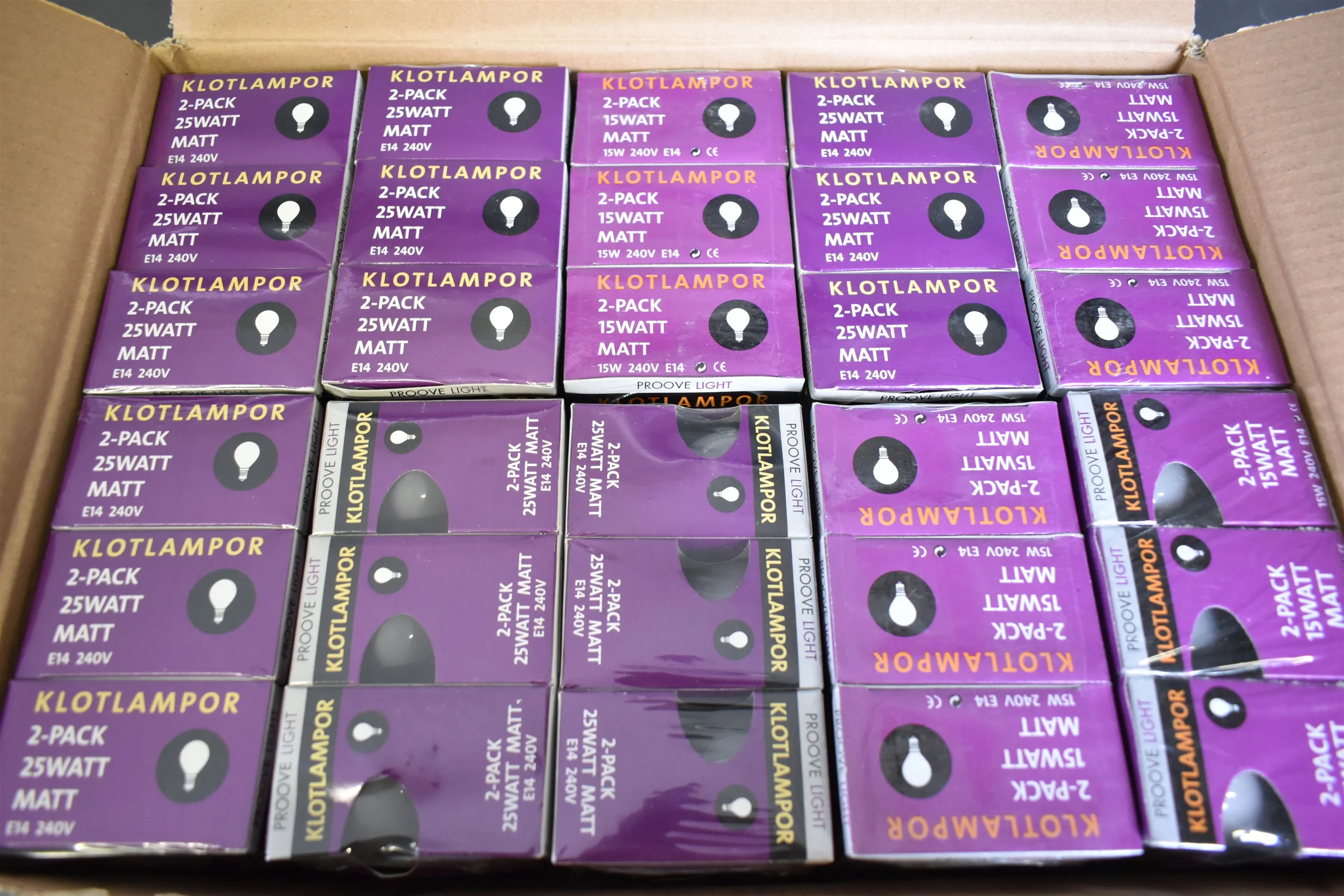 10204. Parti klotlampor 25W E14 240V, 60 st förpackningar