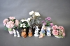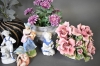8184. Parti konstblommor, bordsuppsats och figuriner, högsta höjd 45 cm