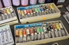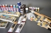 7732. Parti konstnärstillbehör bla oljefärger och penslar