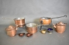 2059. Parti koppar bla kaffepannor och trebent kastrull, högsta höjd 30 cm