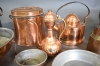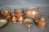 1138. Parti koppar bla kannor och kittlar, högsta höjd 27 cm