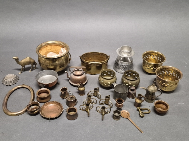 18547. Parti koppar/mässing bl.a miniatyrer högsta 8 cm