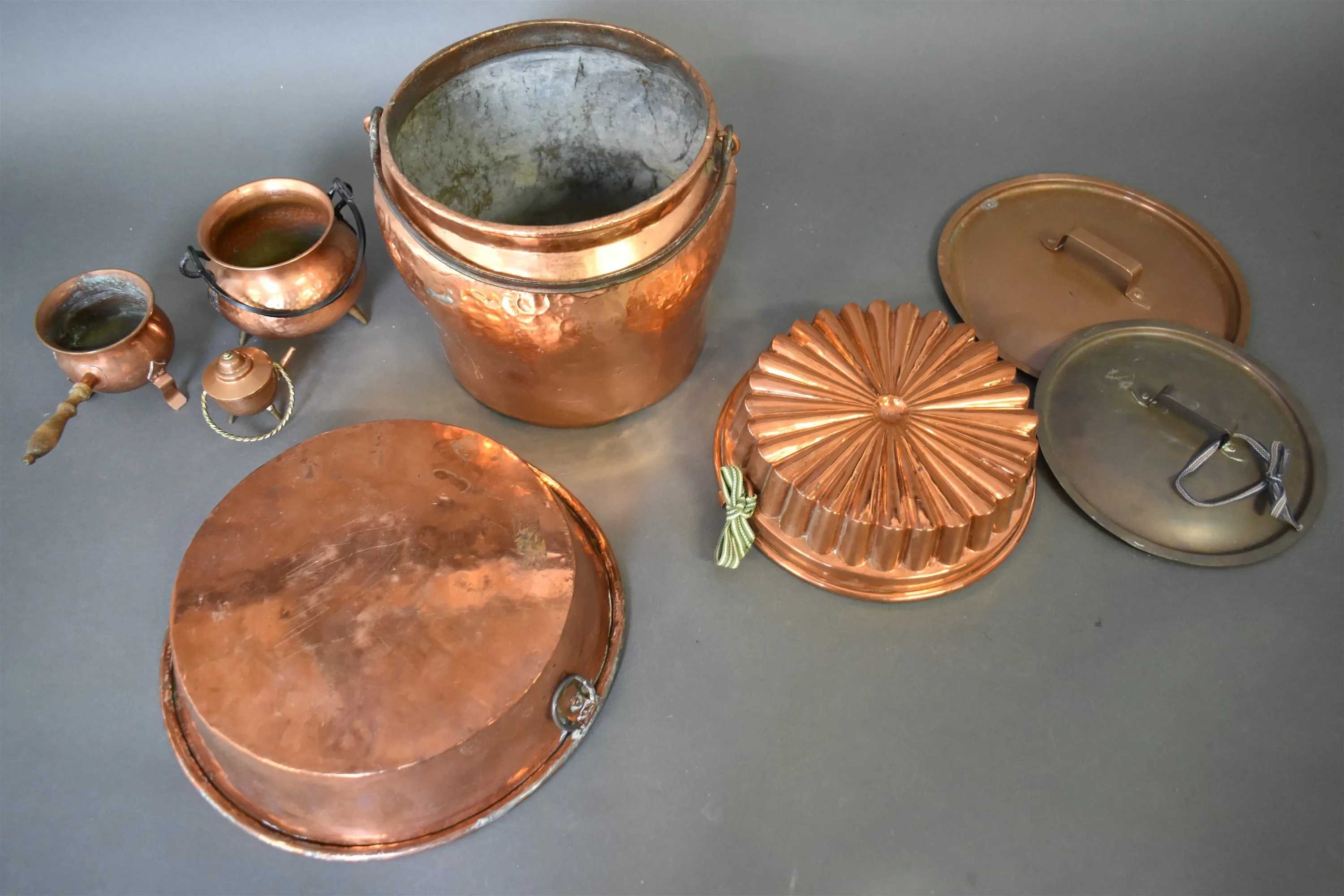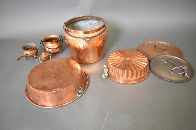 12497. Parti kopparföremål, högsta 22 cm