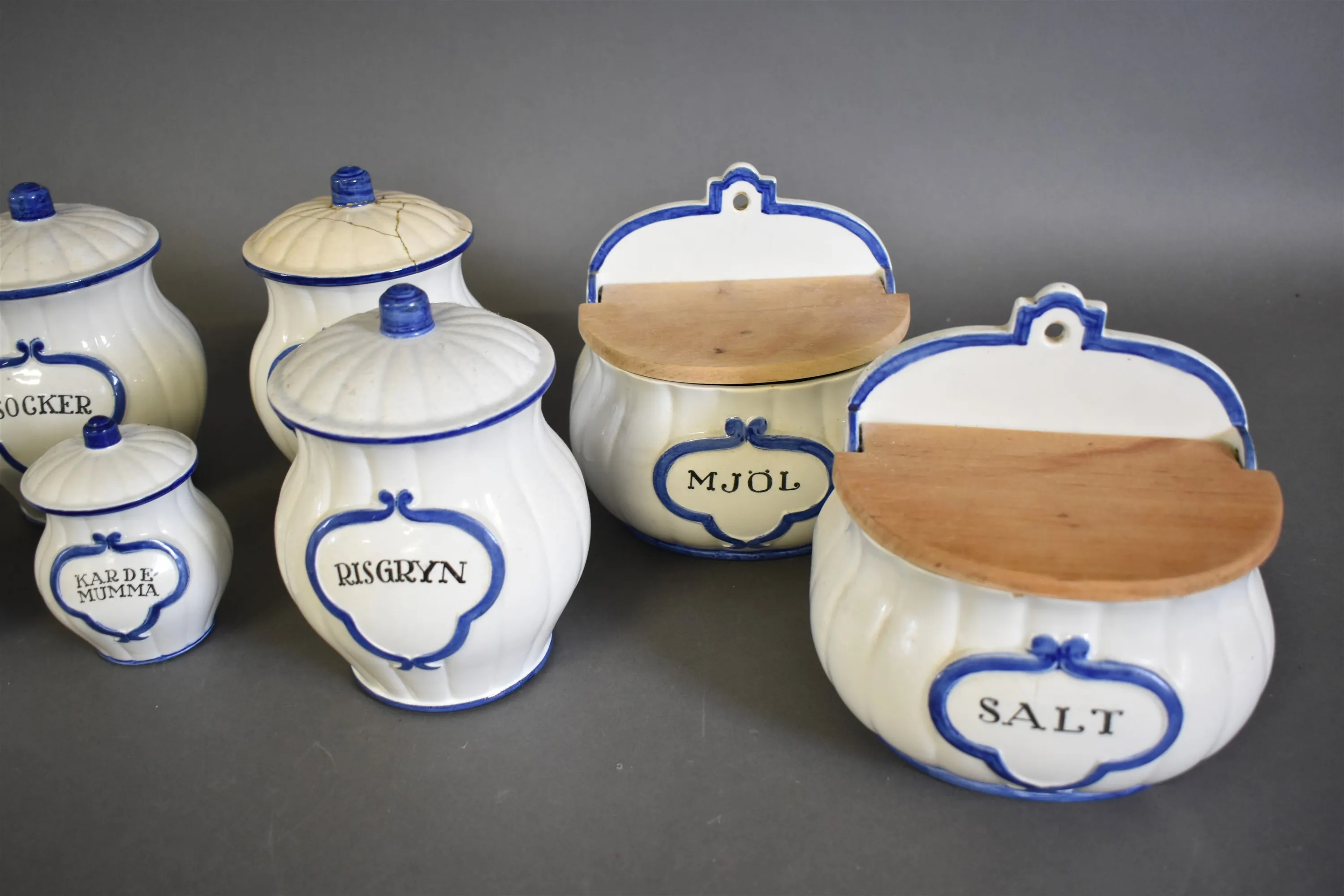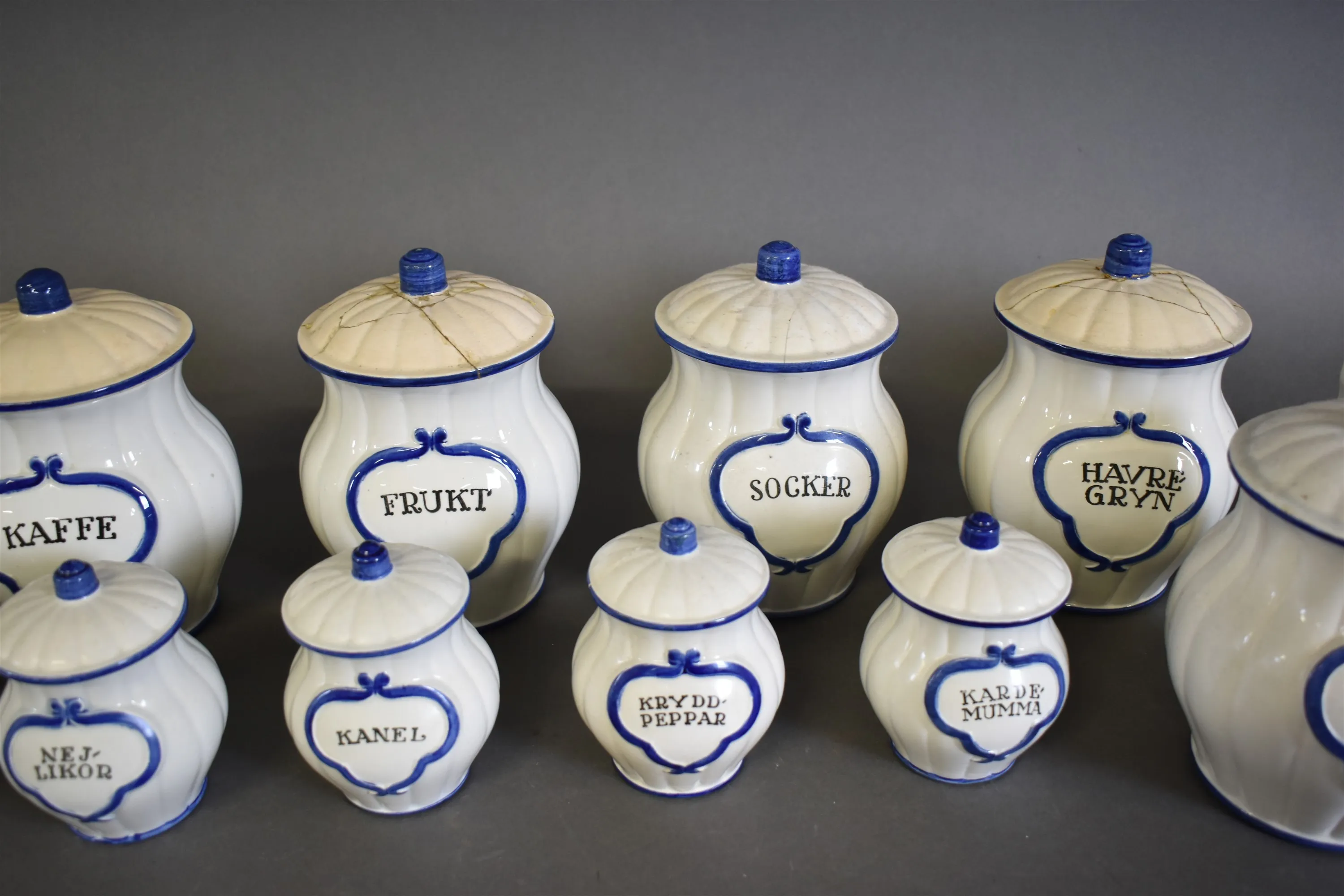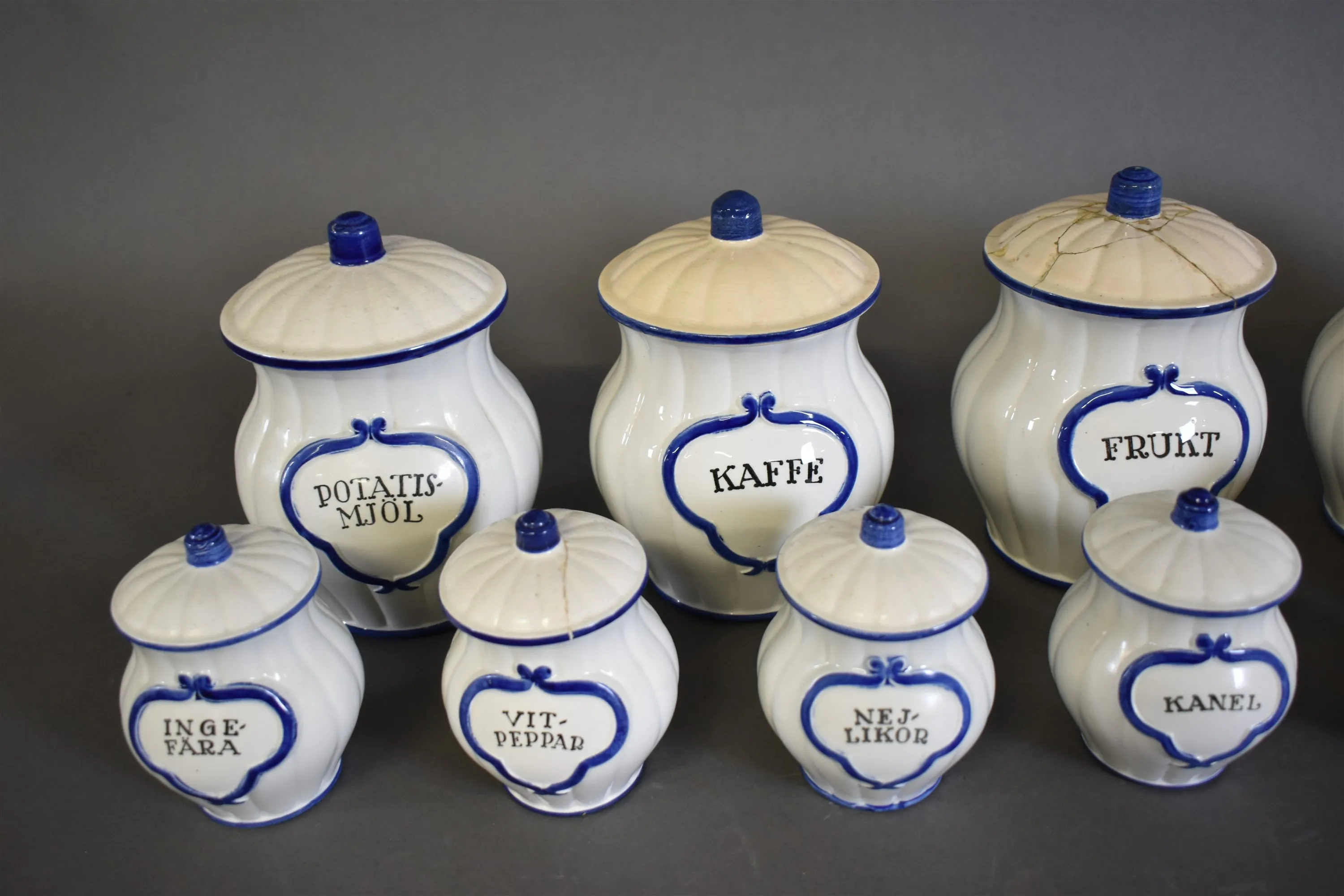 16289. Parti kryddburkar Gustavsberg, sprickor och defekter finns, högsta höjd 18 cm