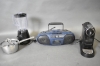 16600. Parti kök och teknik bla mixer Severin och stereo Grundig, högsta höjd 38 cm
