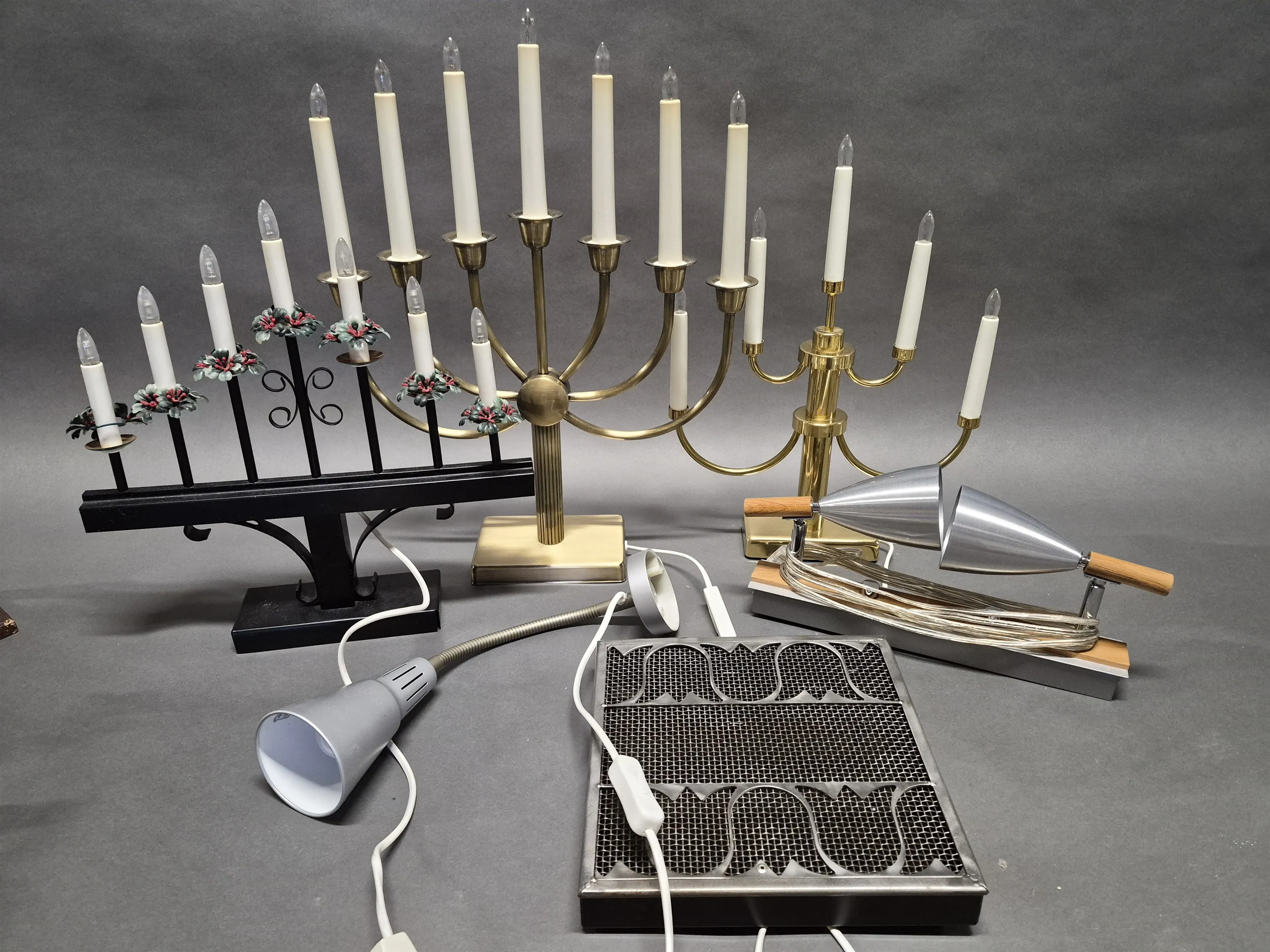 16987. Parti lampor & el-ljusstakar högsta 52 cm