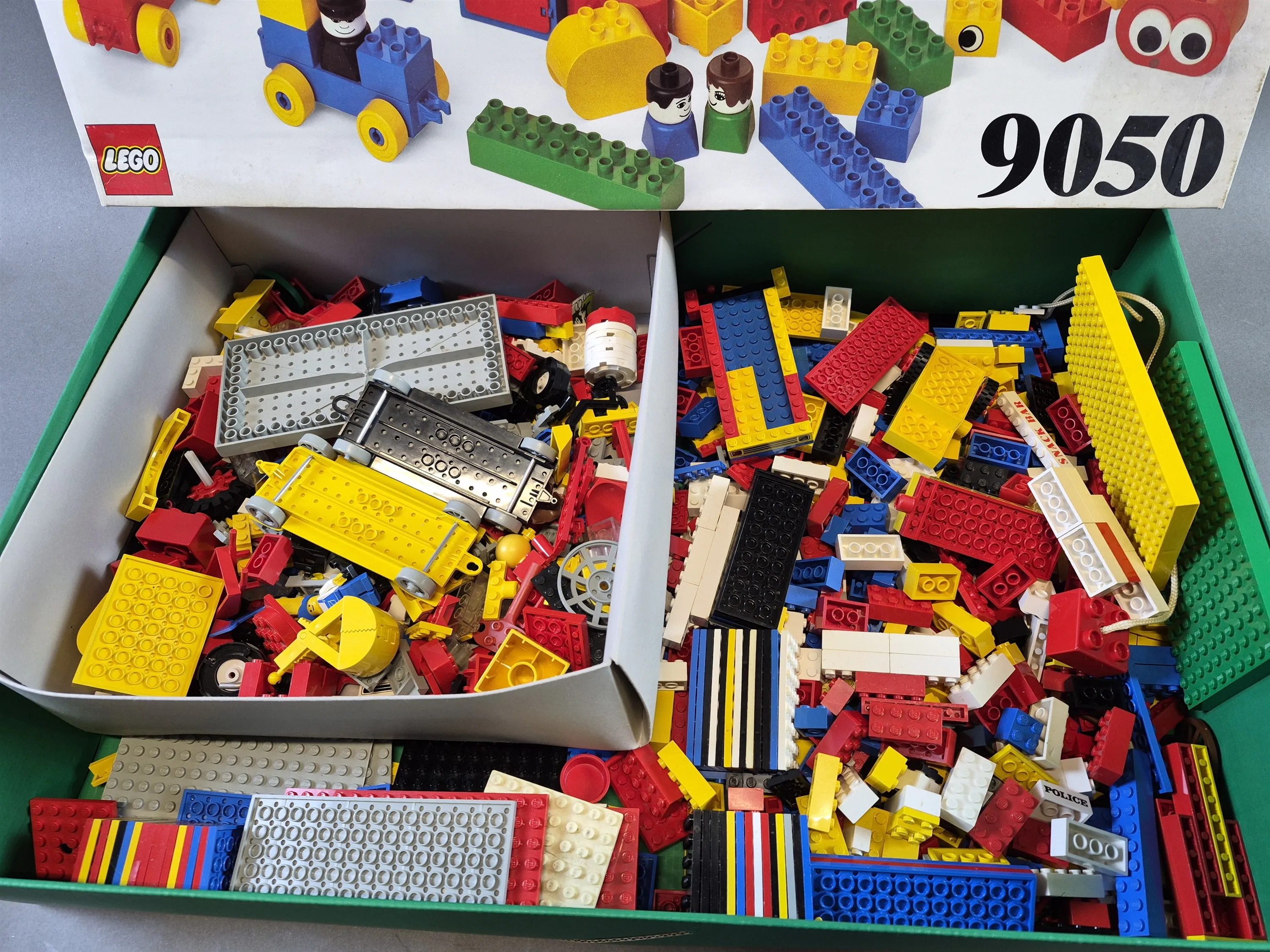 20245. Parti LEGO i Duplo 9050 låda, längd på låda 57 cm