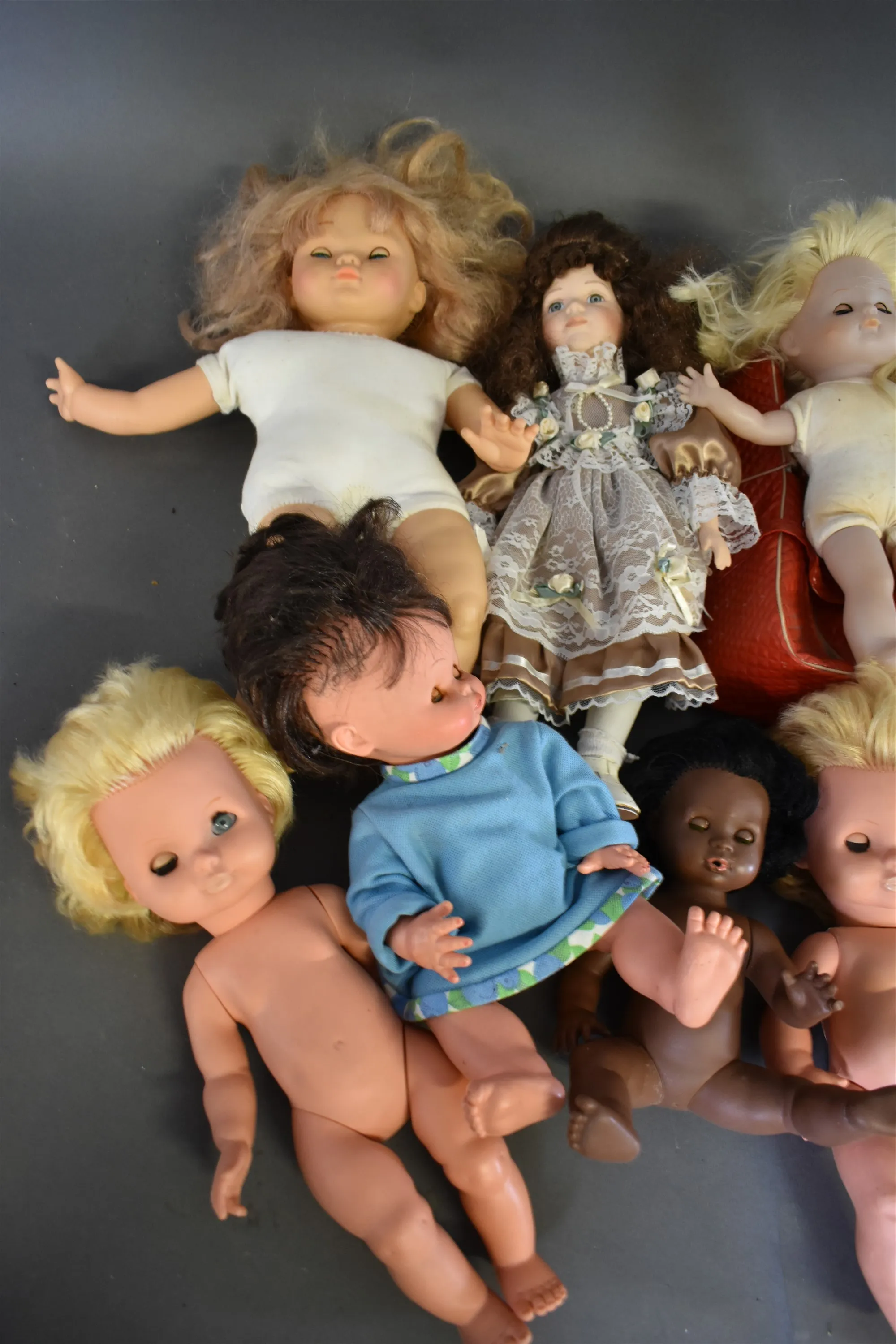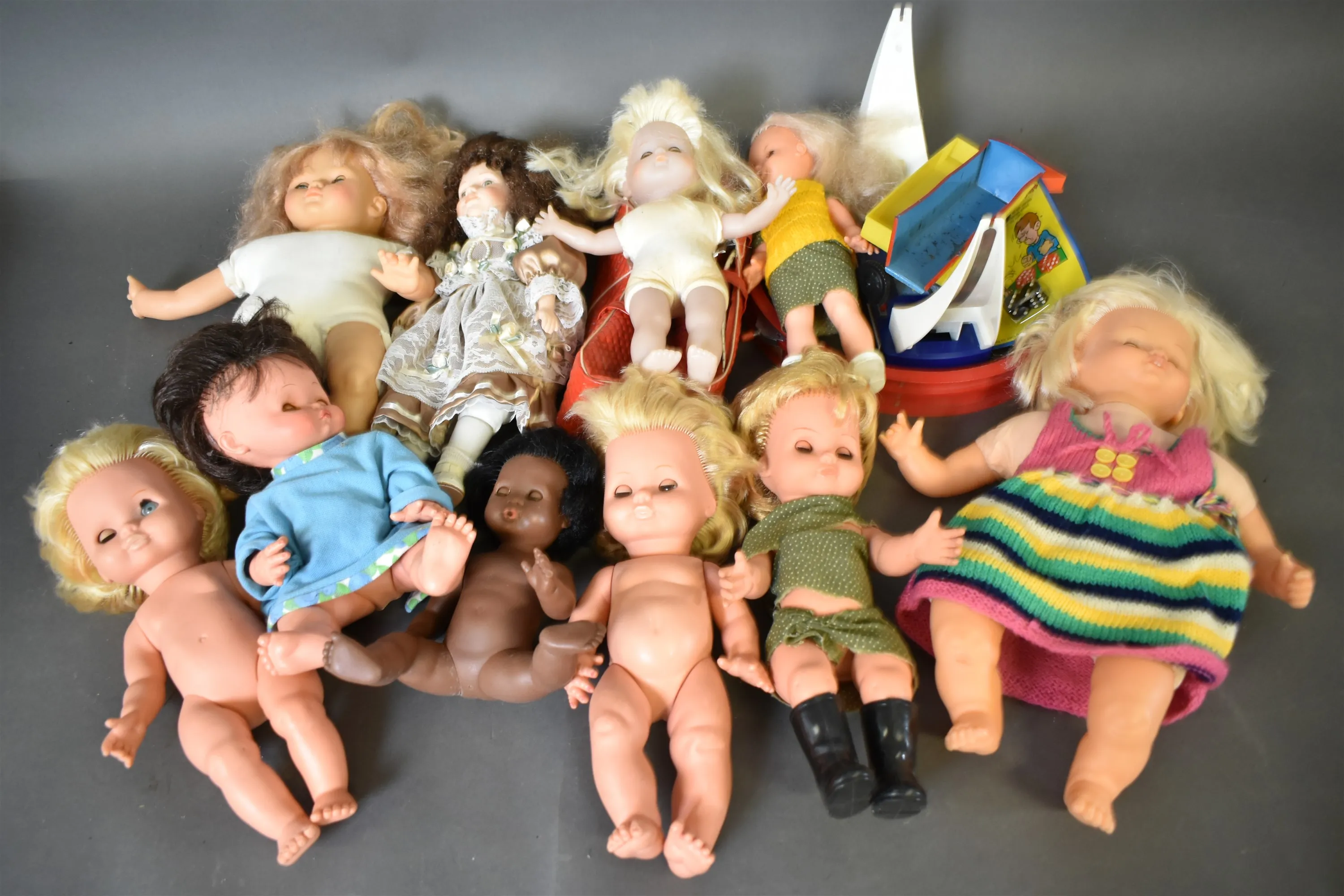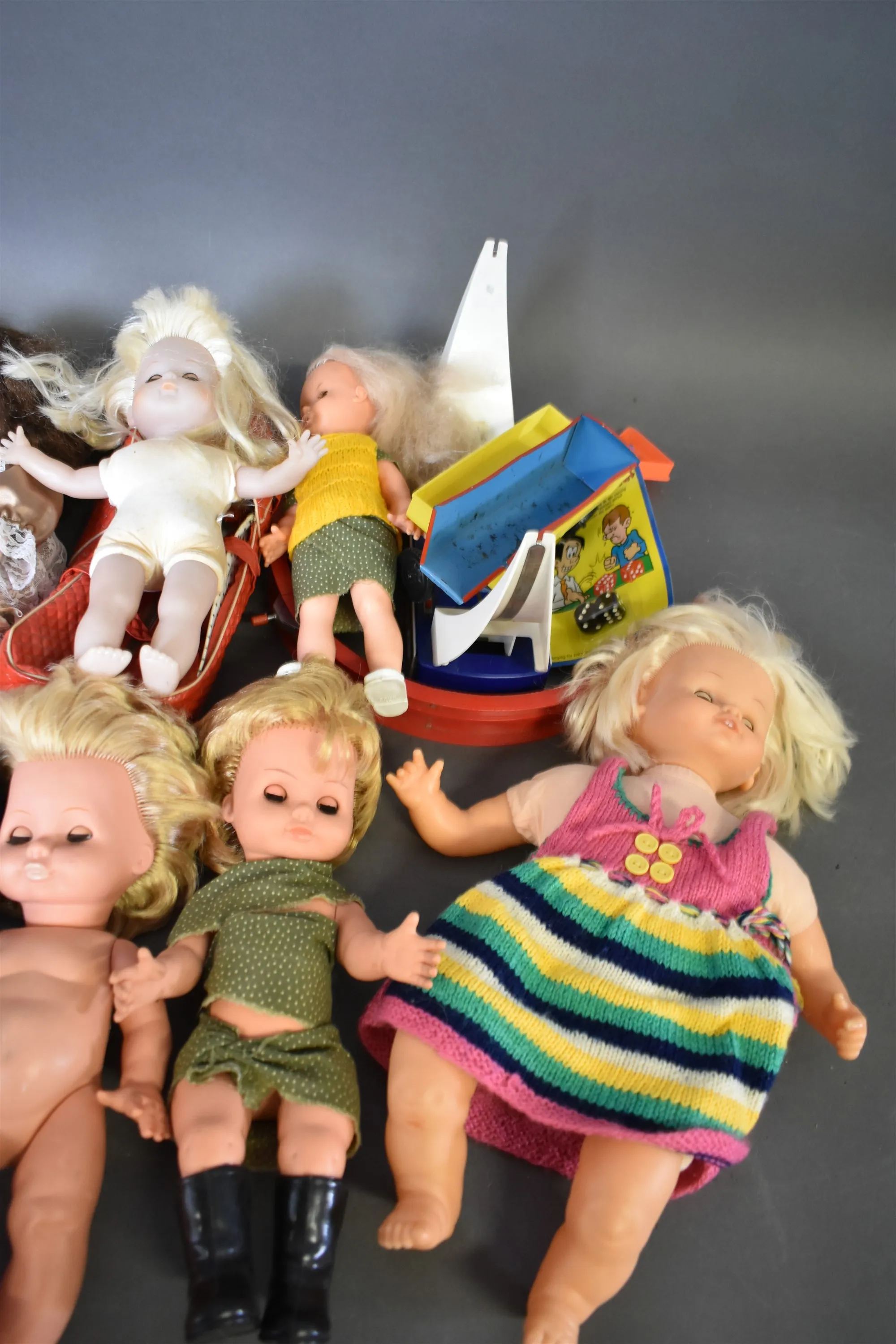 14252. Parti leksaker bl.a dockor längsta 47 cm