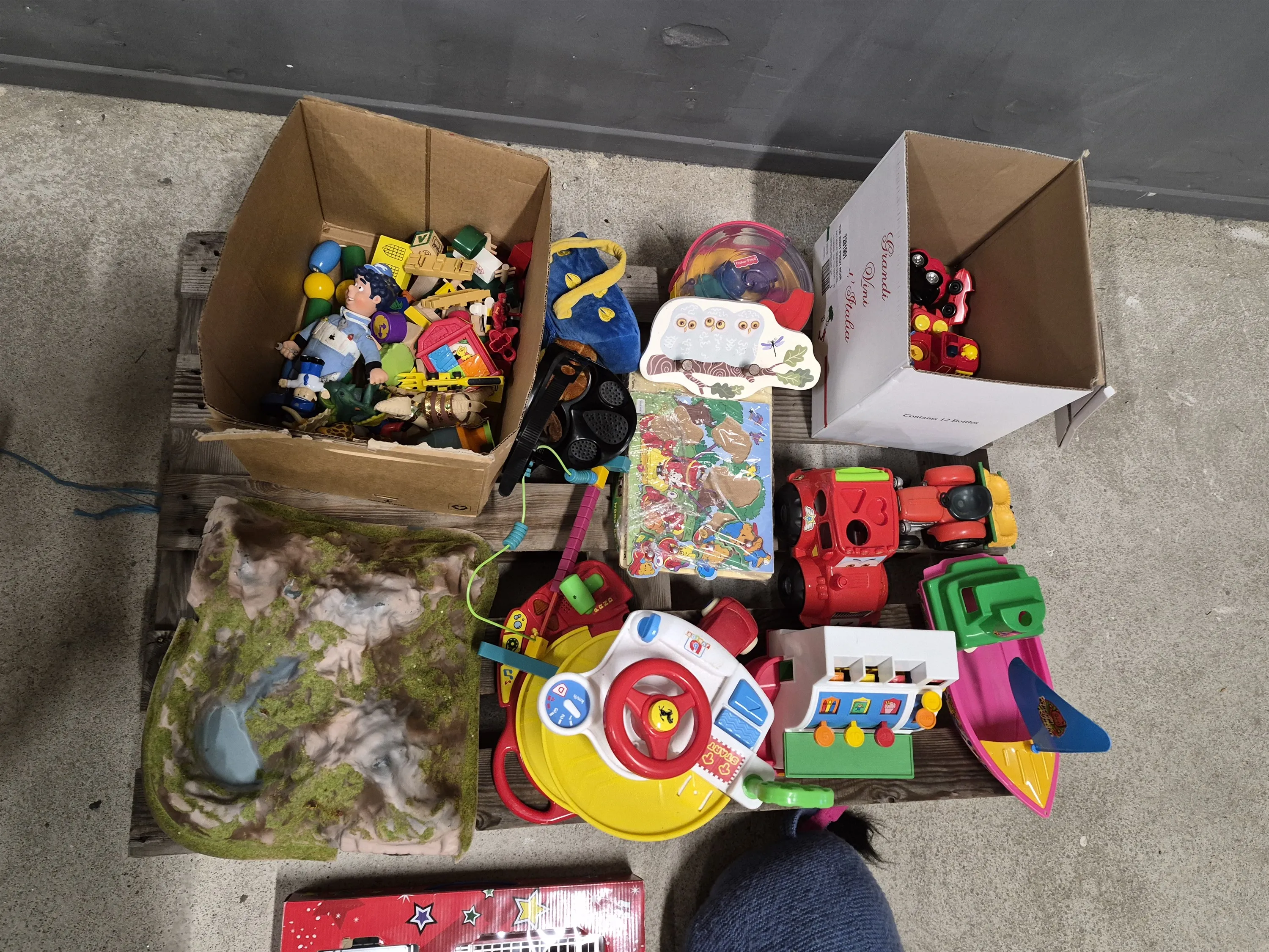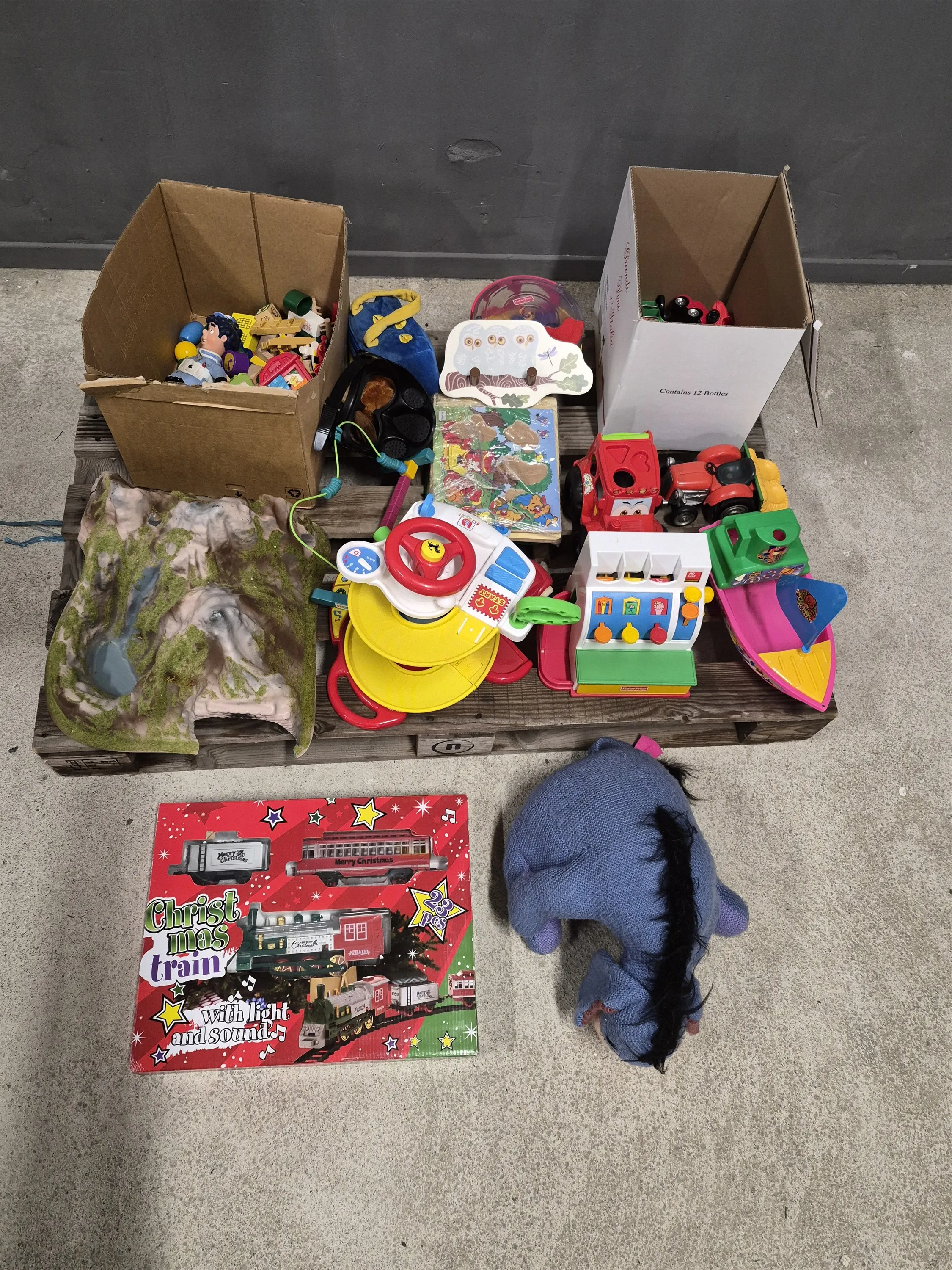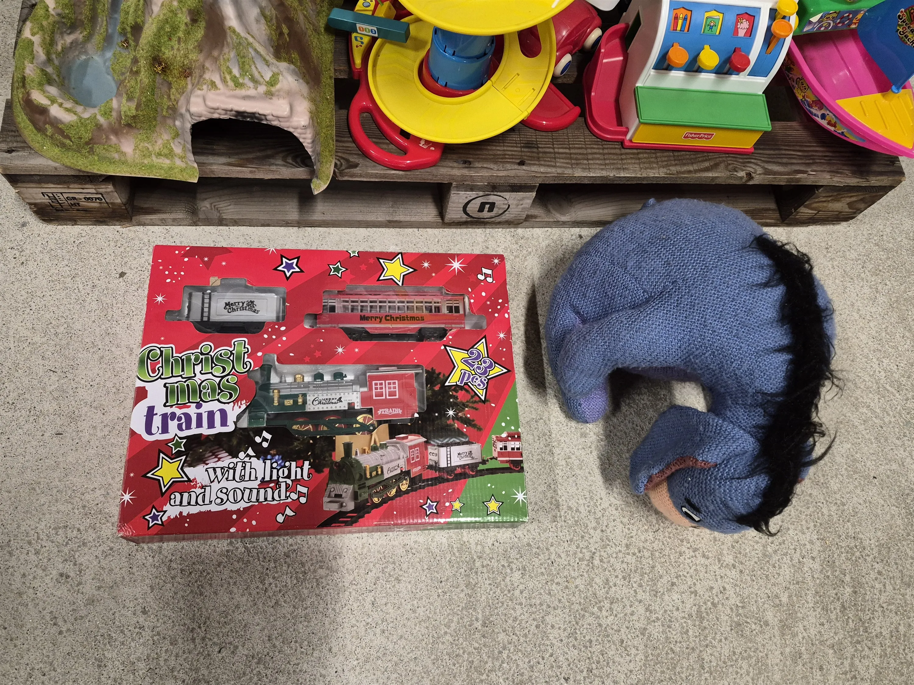 17193. Parti leksaker bl.a jultåg i låda längd 45 cm