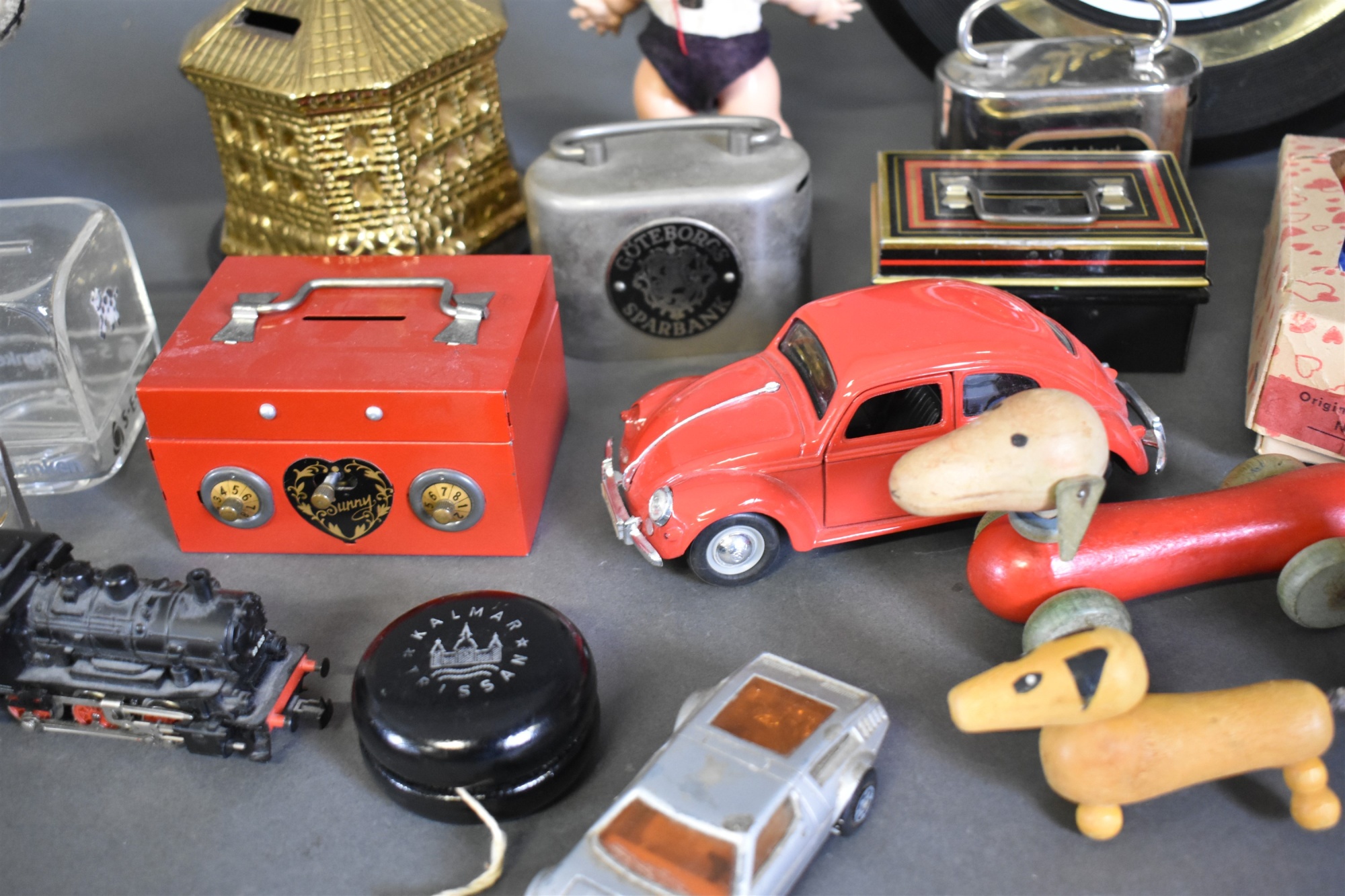 3159. Parti leksaker bl.a Märklin lok och Sparbössa, högsta höjd 15 cm