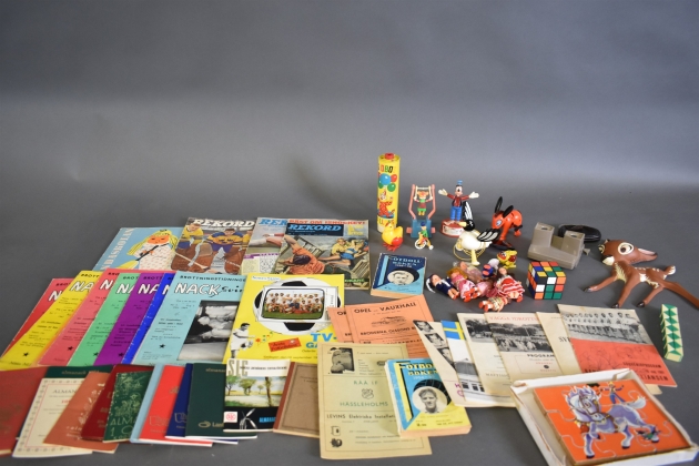 16172. Parti leksaker bla BRIO och diverse blad & tidsskrifter, högsta höjd 22 cm