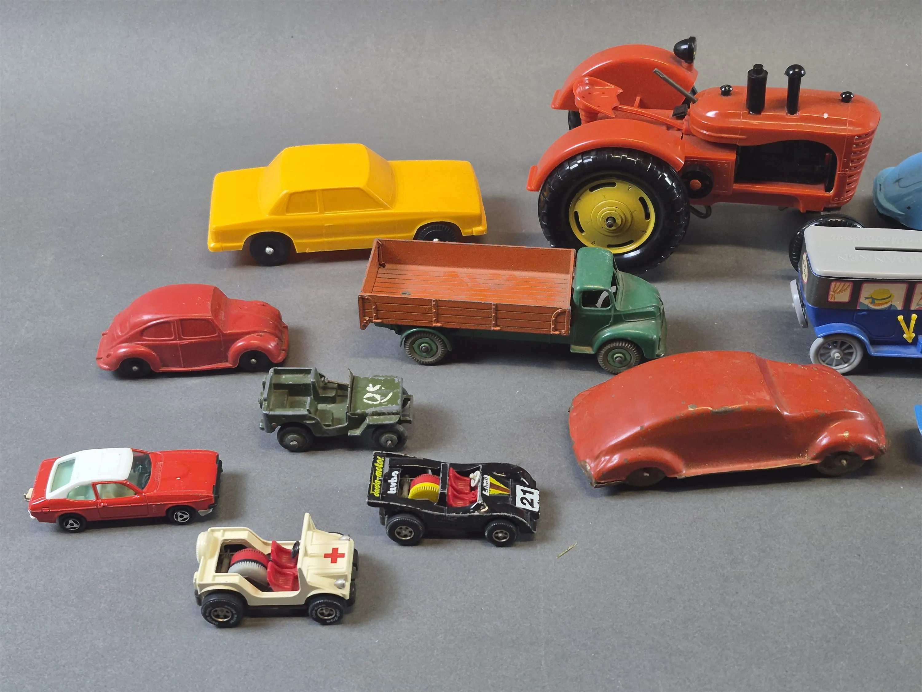 20301. Parti leksaksbilar bla Tri-Ang och Corgi, defekter finns, längsta mått 30 cm