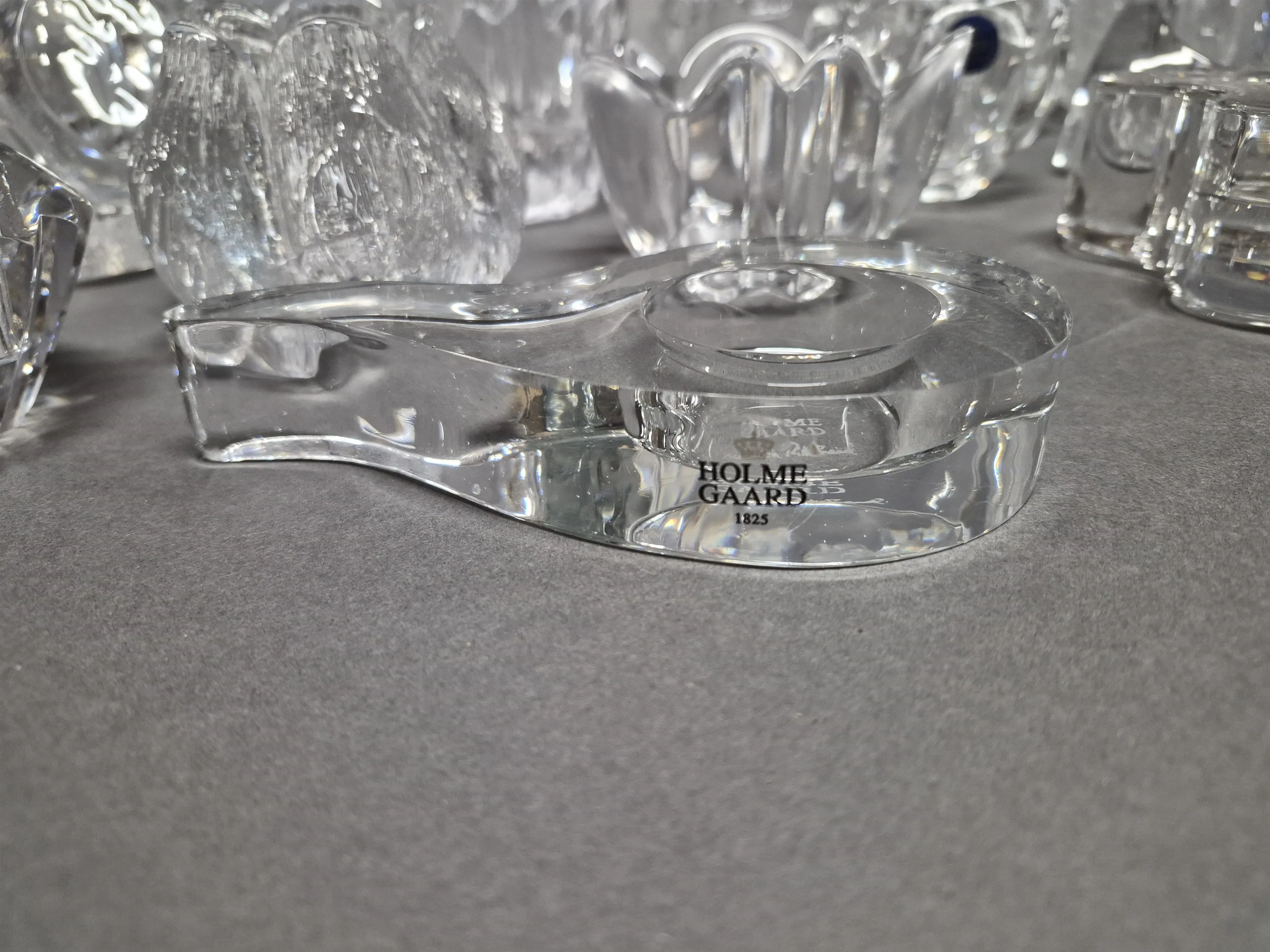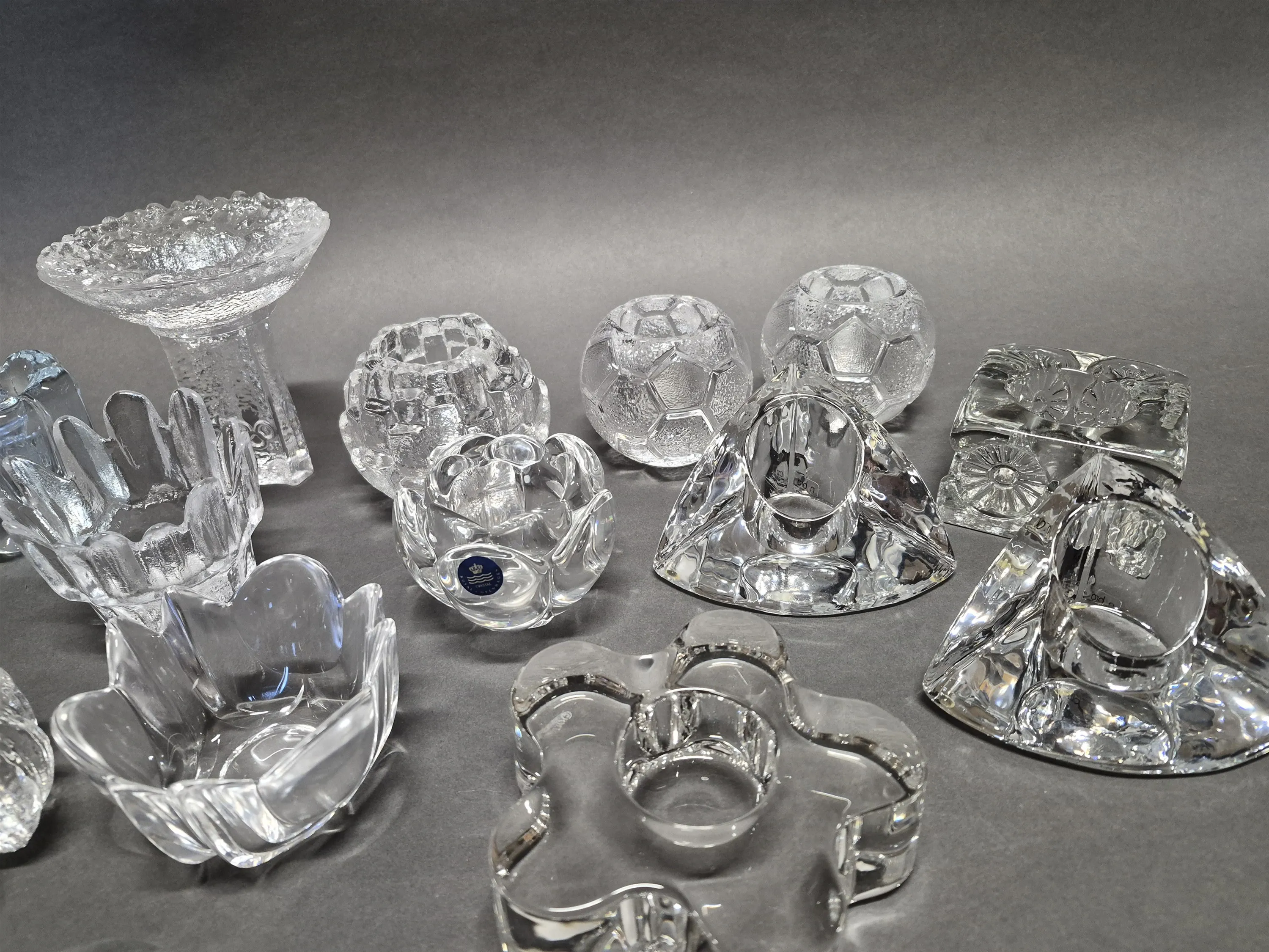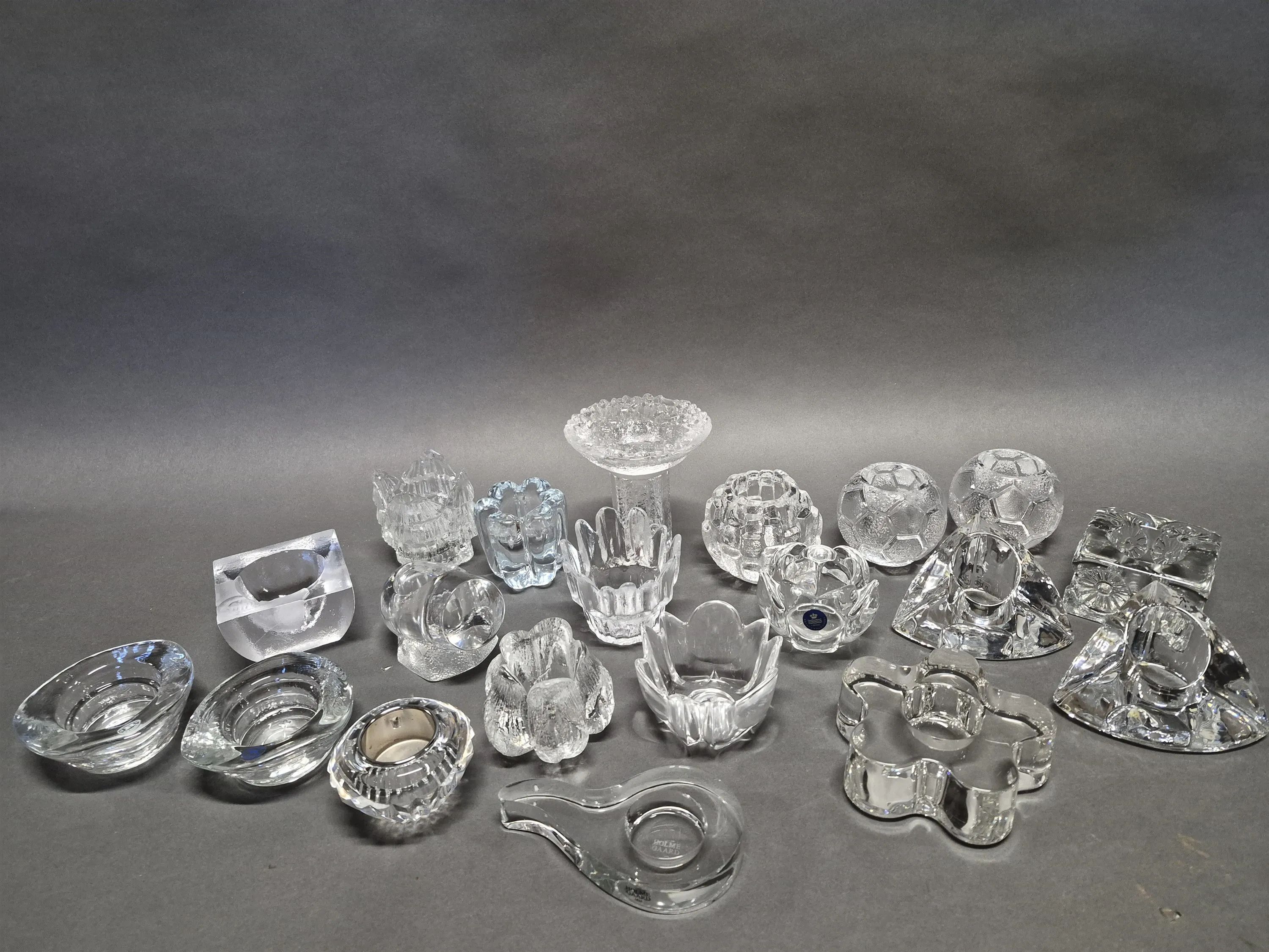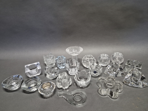 17349. Parti ljushållare bla Orrefors och Holmegaard, glas, högsta höjd 13 cm