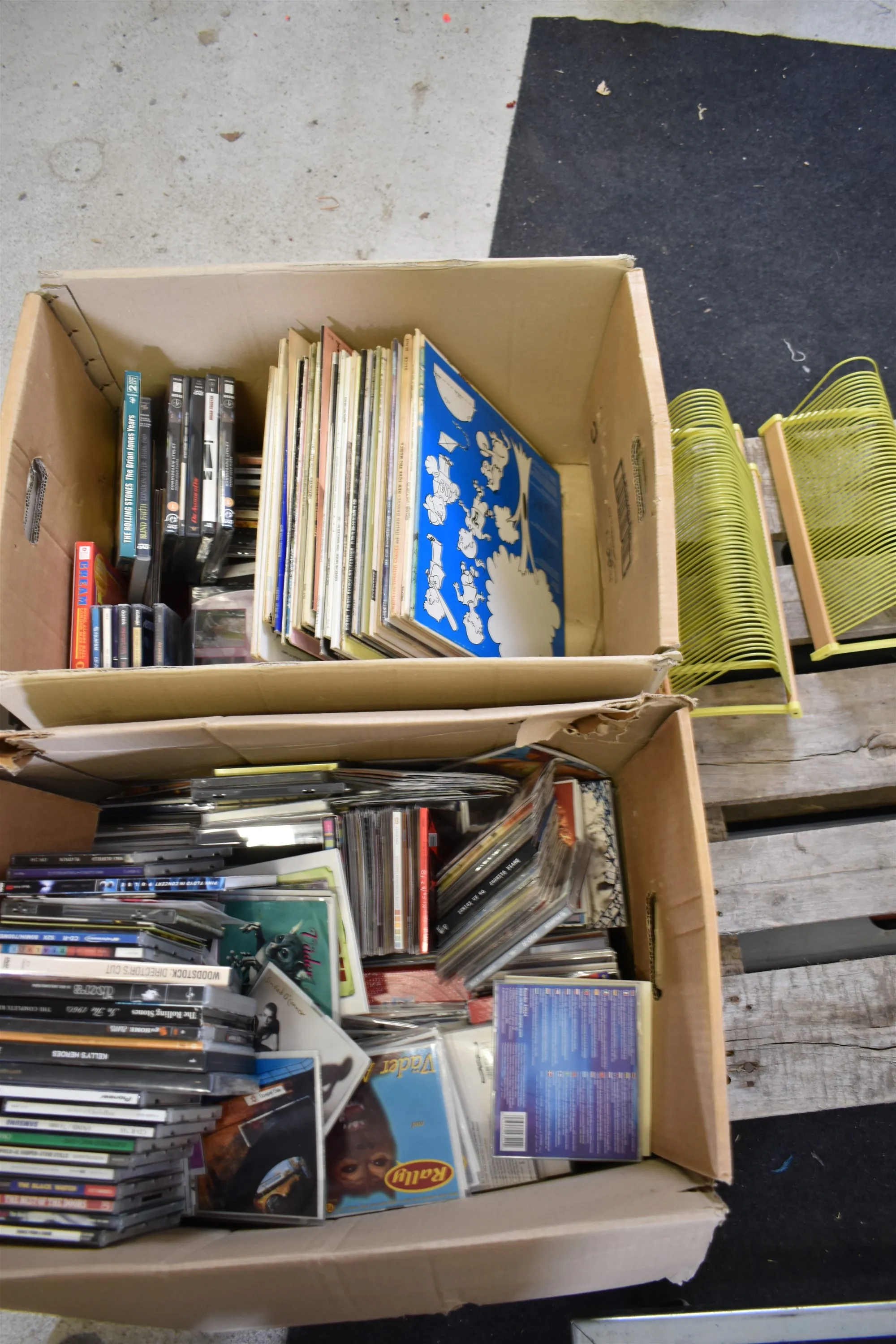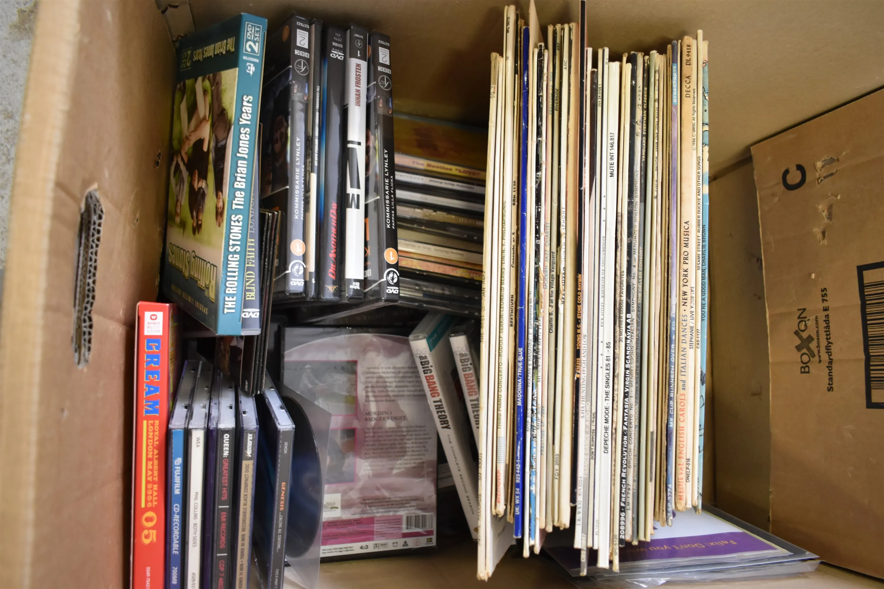 14505. Parti LP skivor CD, DVD 2 lådor
