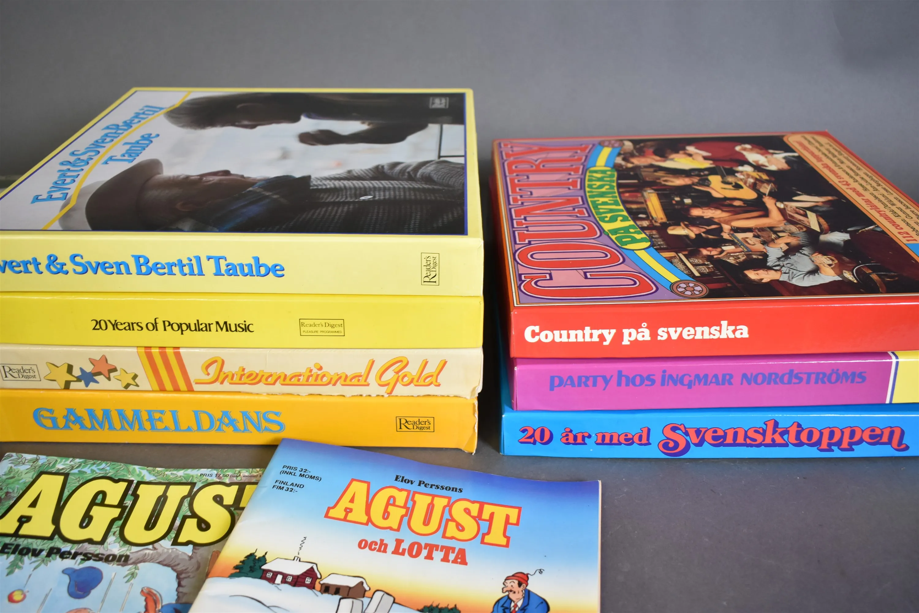 13859. Parti LP skivor och LP boxar bla Sven Bertil Taube och Country på svenska