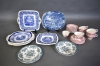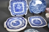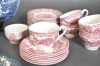 8455. Parti matservisdelar blått och grönt porslin bla Masons & Wedgewood och kaffeservisdelar rött porslin bla Unicorn, England, längsta mått 28 cm