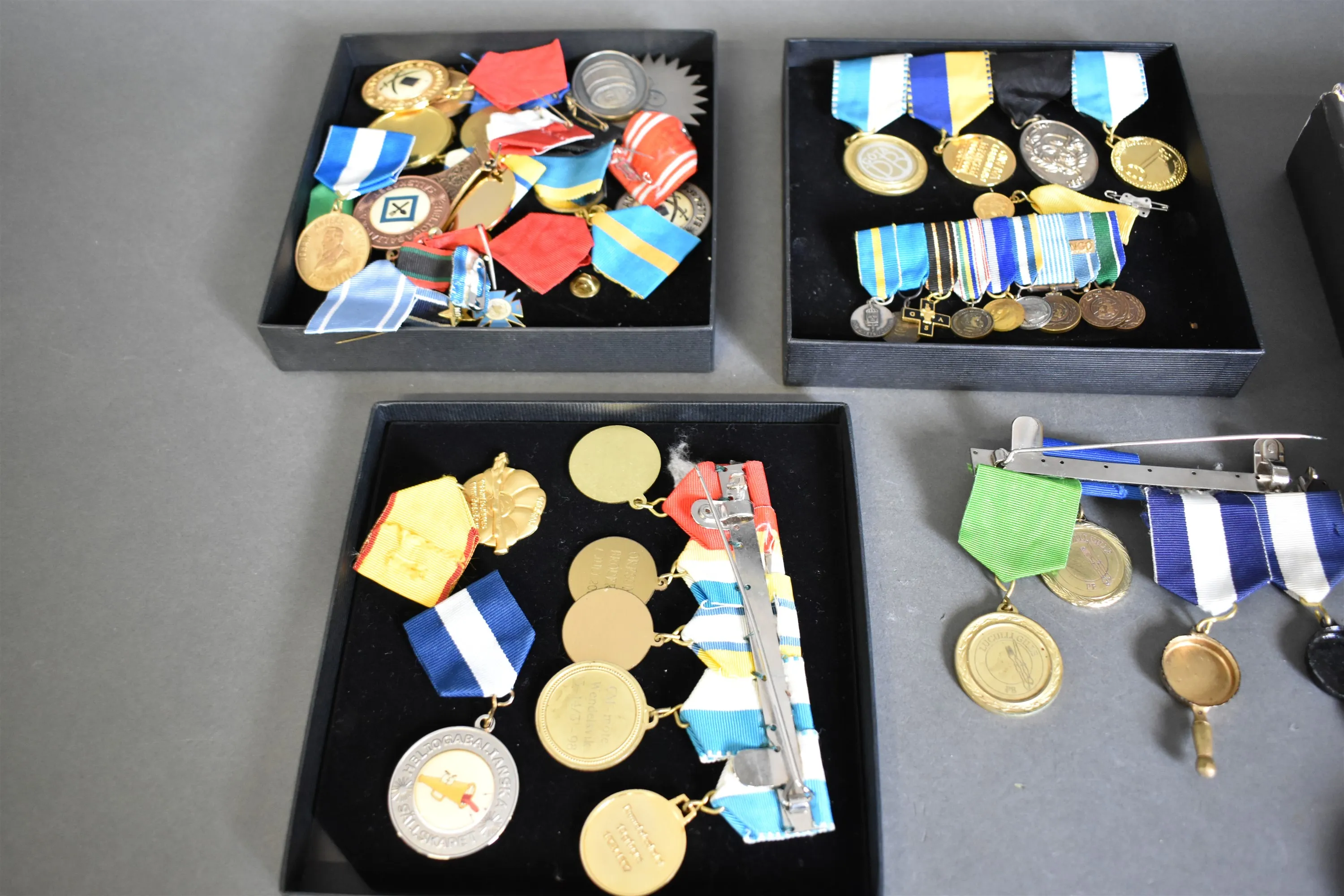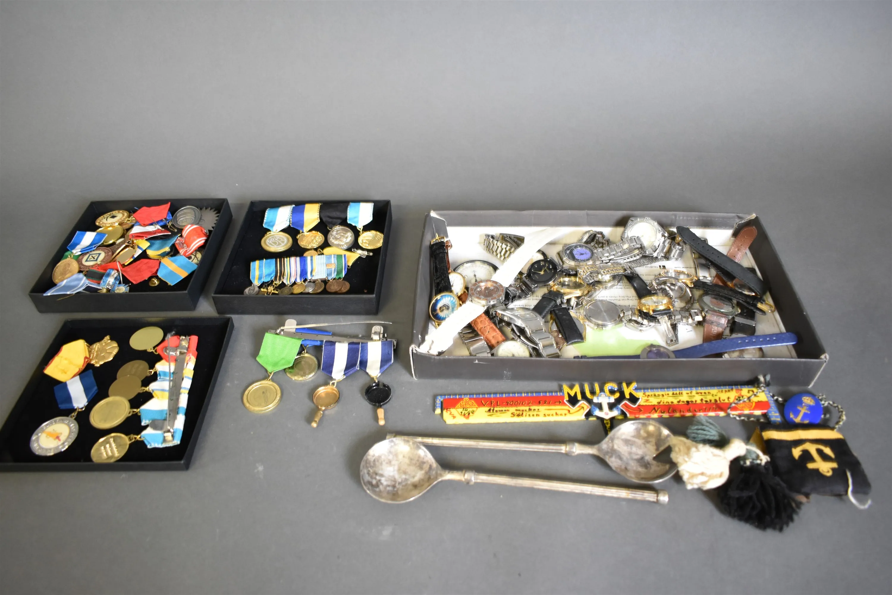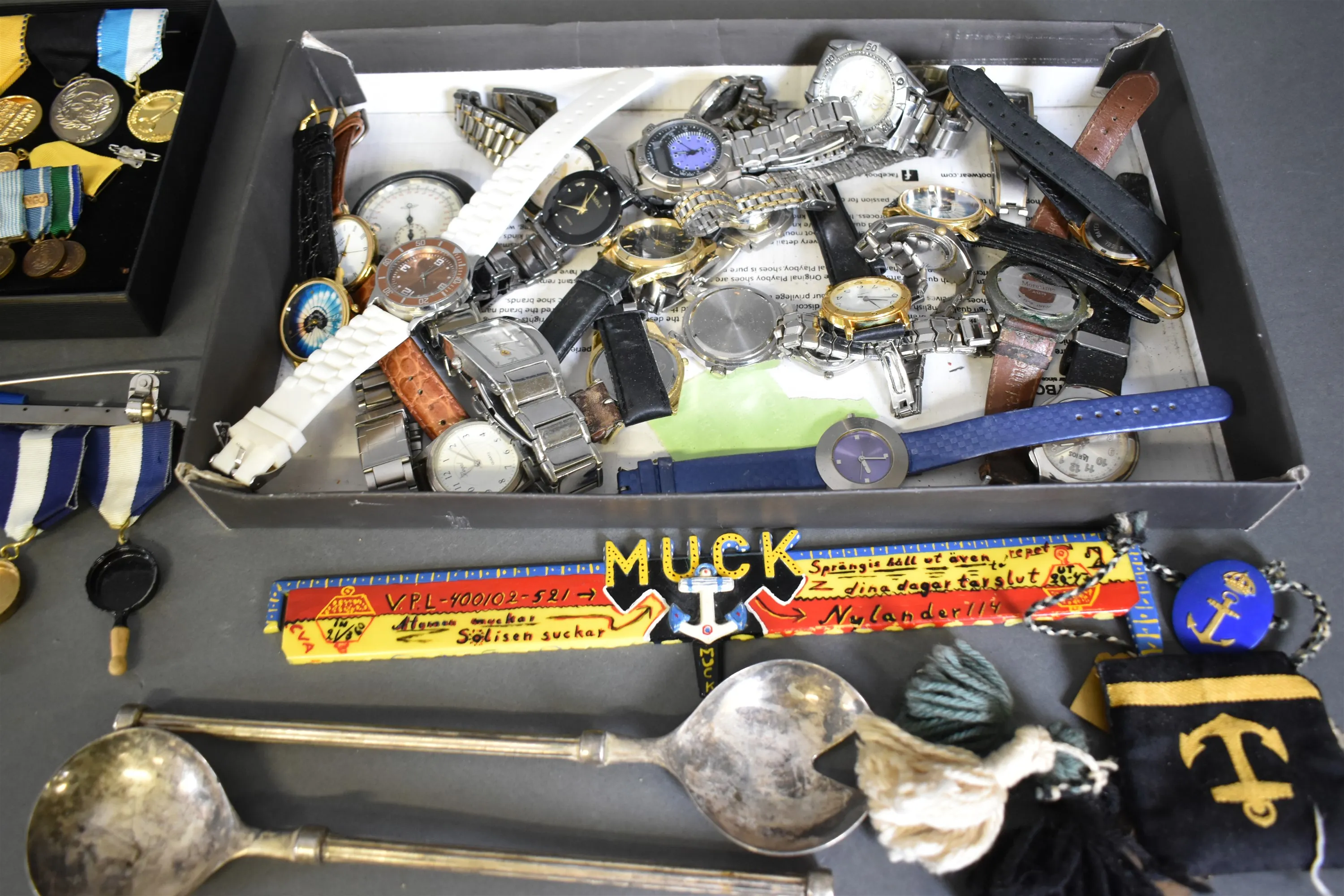 11795. Parti medaljer, pins och armbandsur