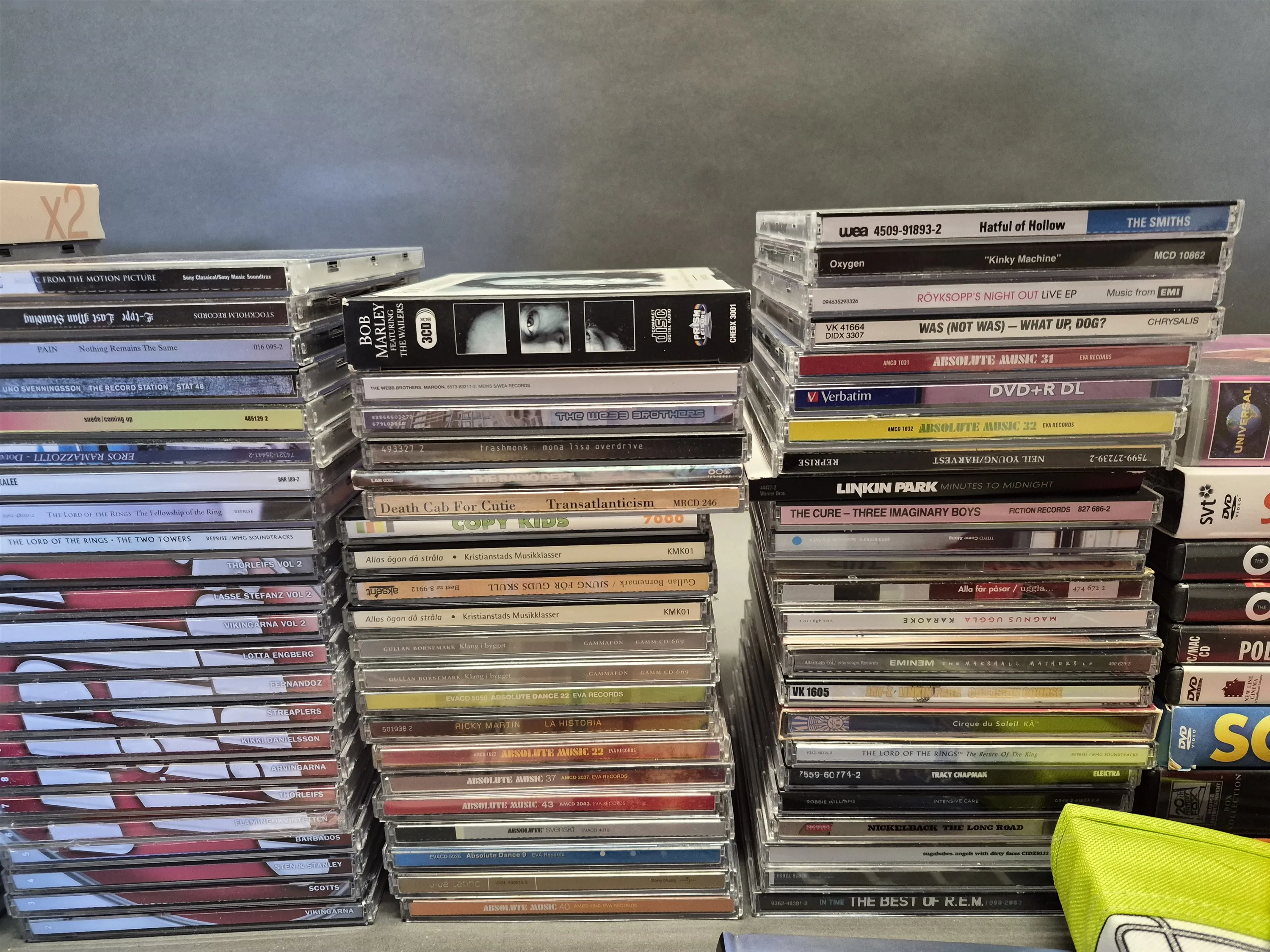 19221. Parti mestadels CD bla Linkin Park, Korn och Absolute Music, ej genomgånget, 2 lådor