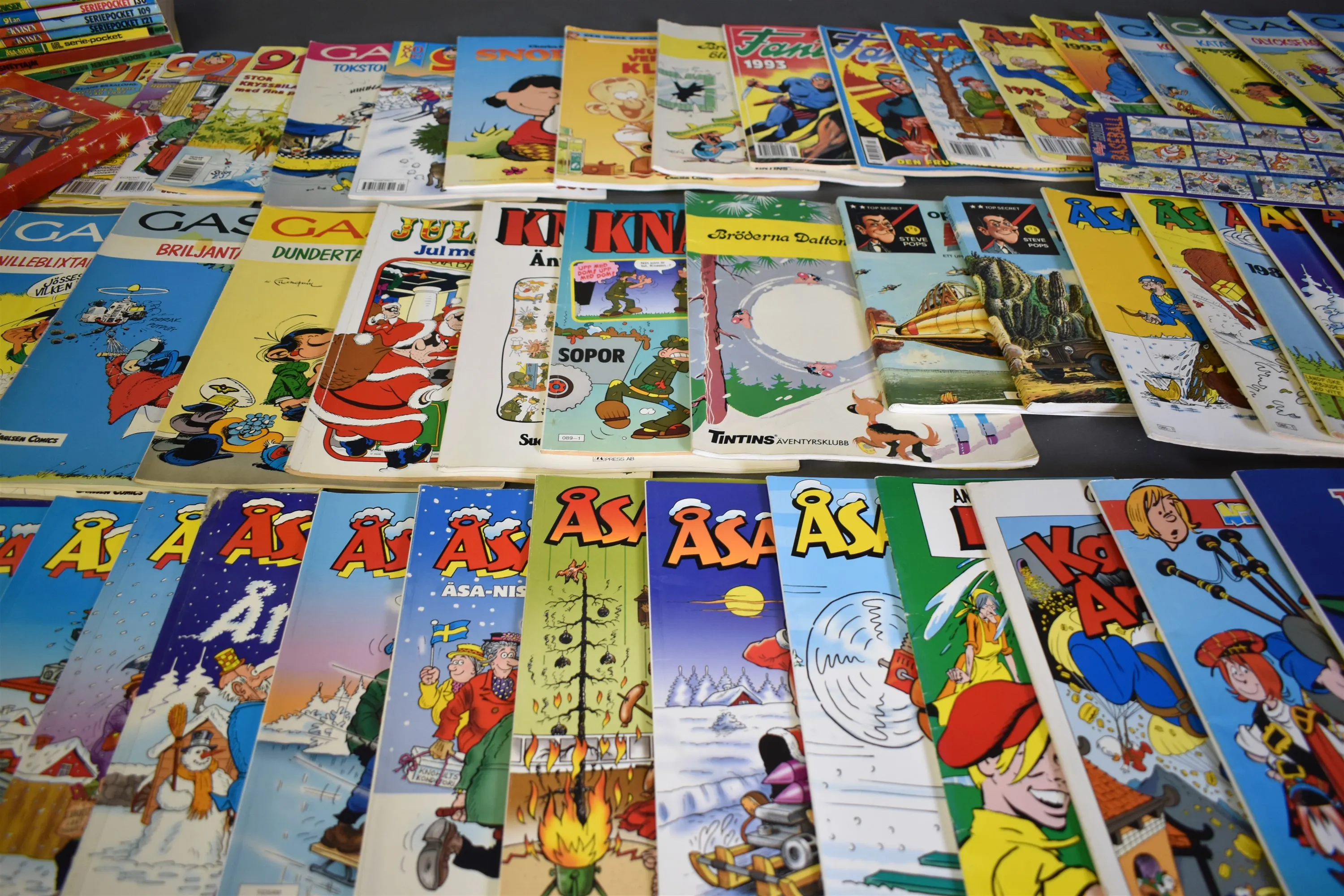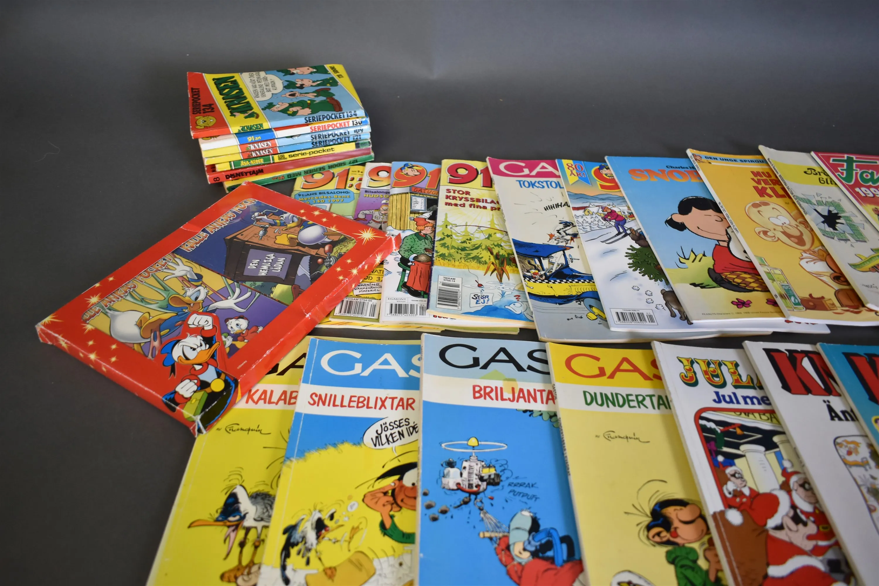 7916. Parti mestadels seriealbum bla Åsa-Nisse och Gaston