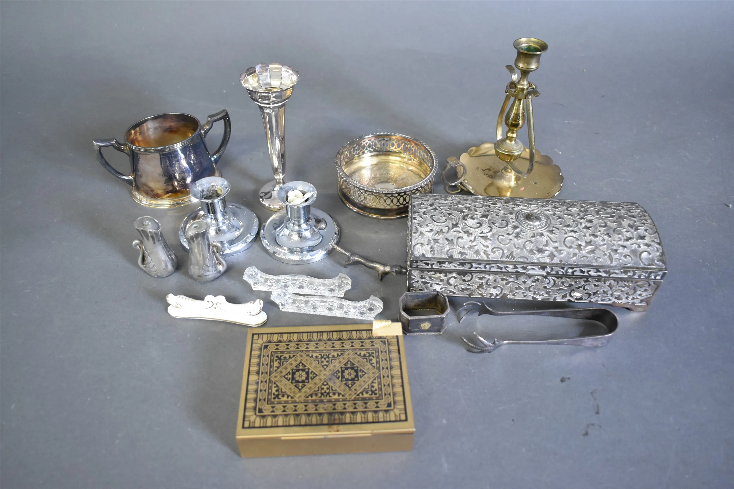 13326. Parti metall & ljusstakar högsta 18 cm