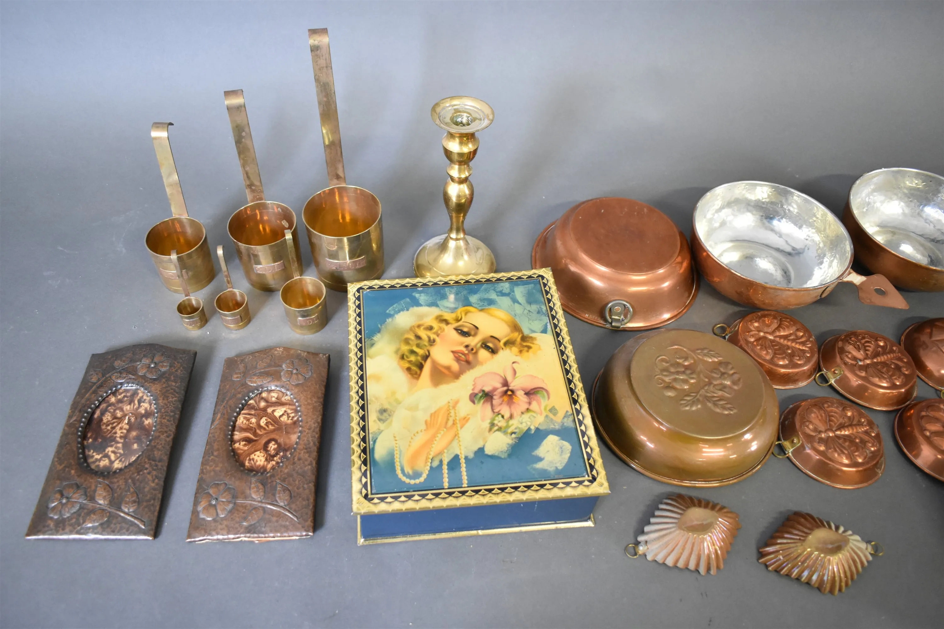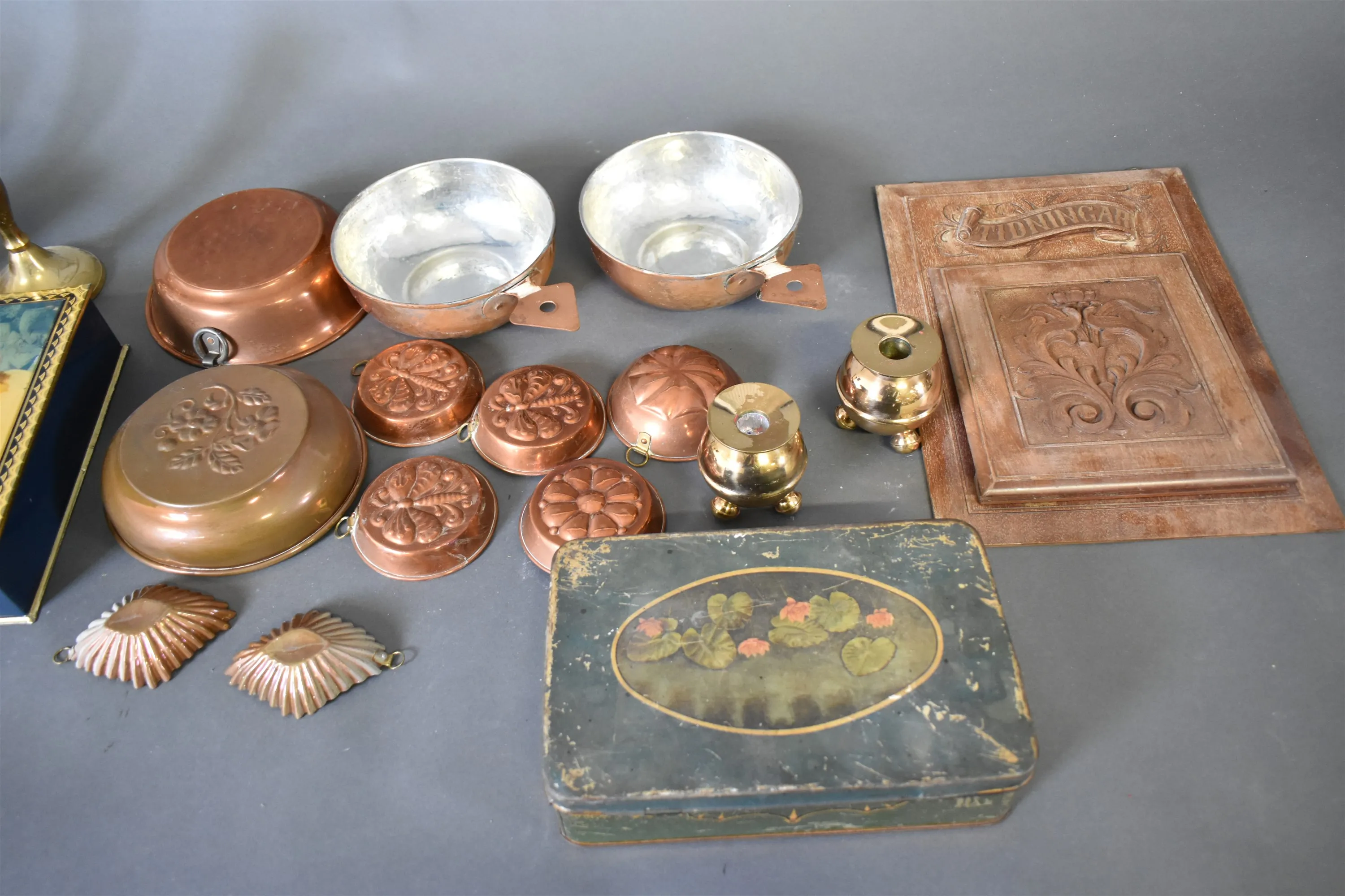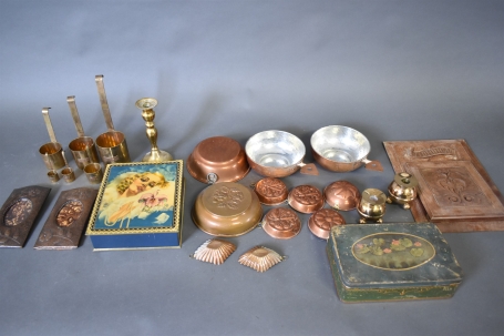 8484. Parti metall & Tidningshållare trä, ca 1900, längsta 38 cm