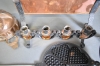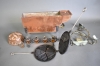 11596. Parti metall bl.a varmvattenberedare & smideslampa längsta 55 cm