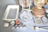 5835. Parti metall, bl.a bordslampa & serveringsbrickor, högsta 48 cm