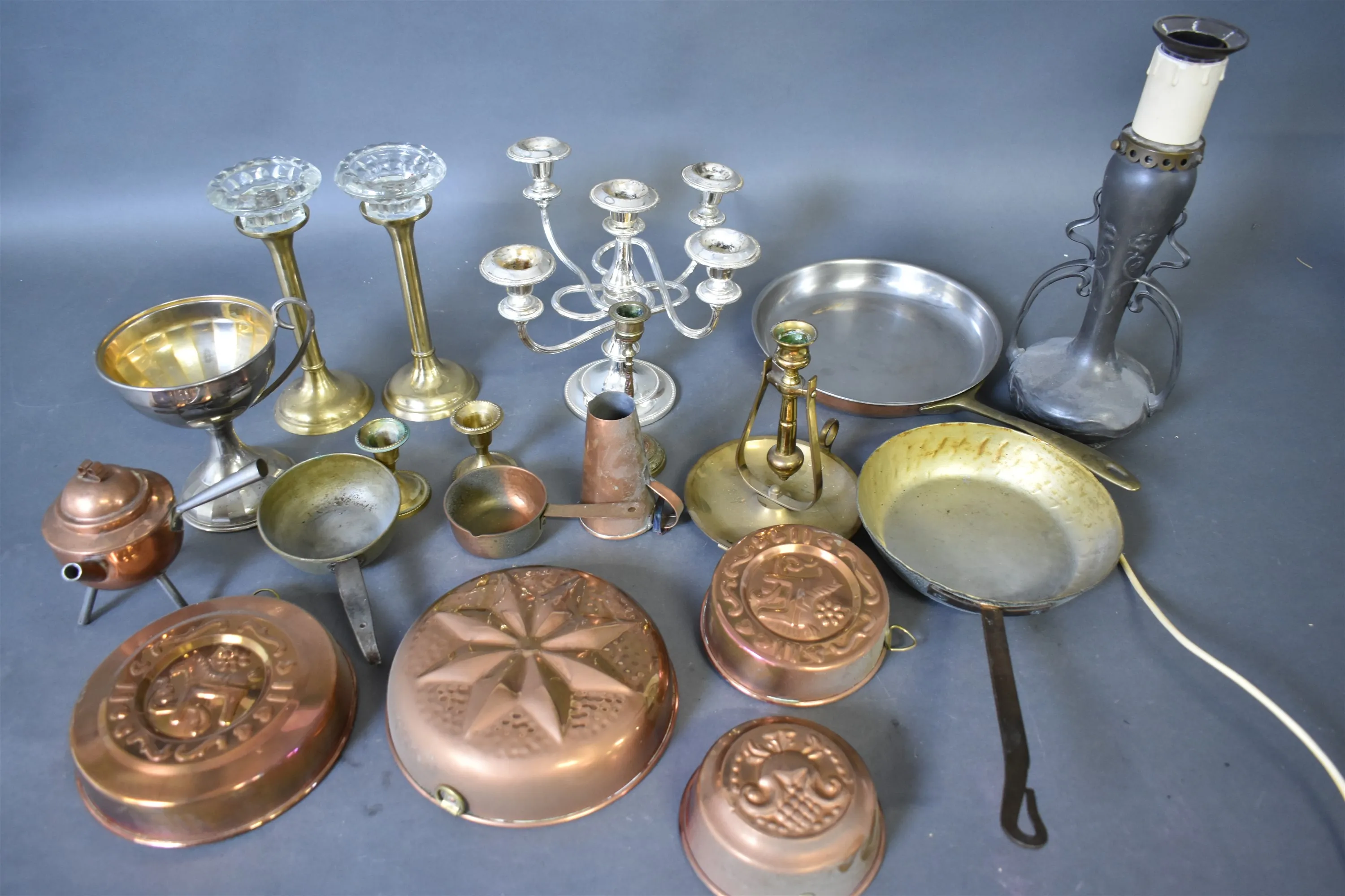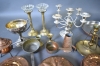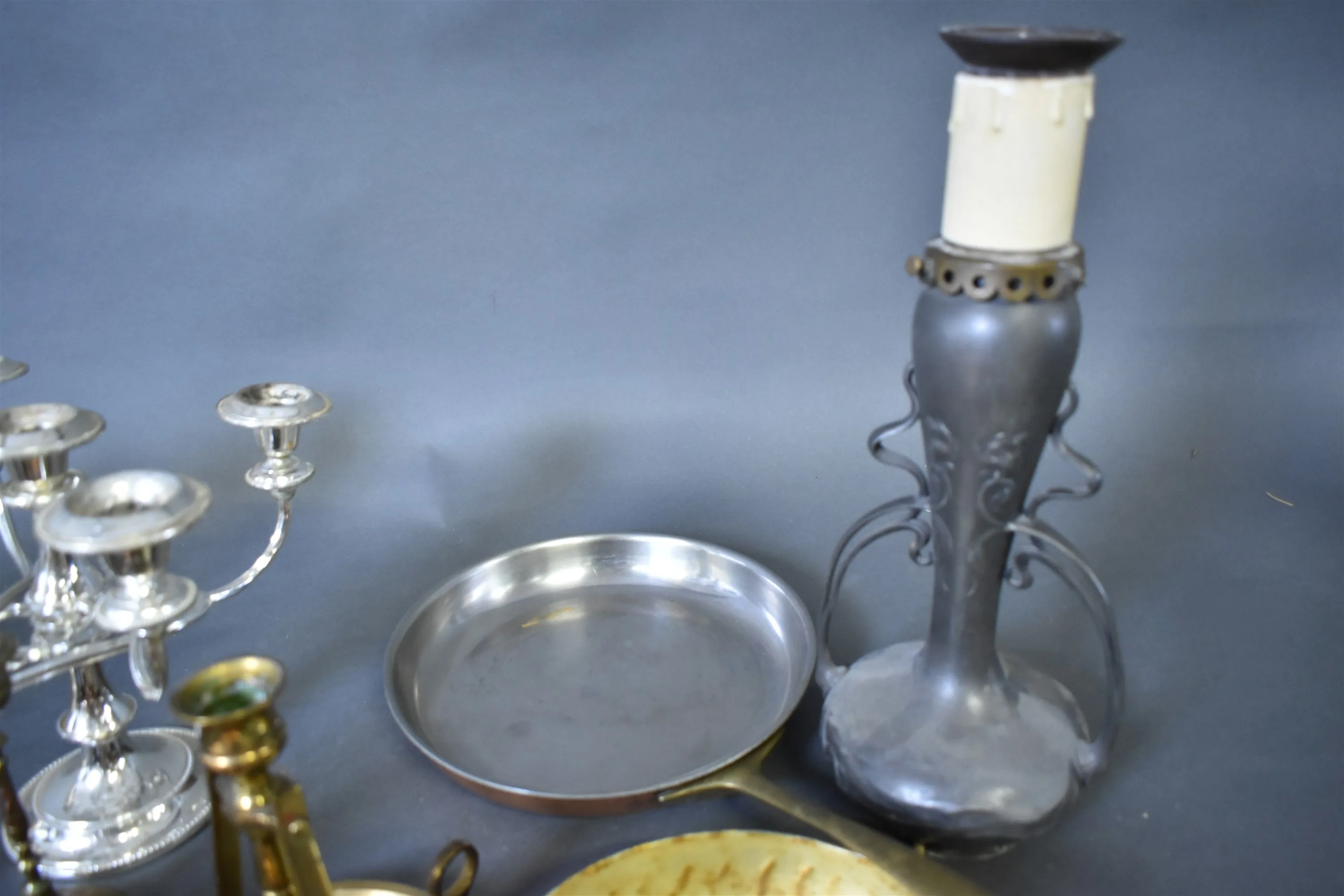16312. Parti metall, bl.a bordslampa jugend, högsta 37 cm