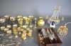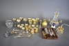 11030. Parti metall bl.a bägare bestick & bordslyster högsta 38 cm