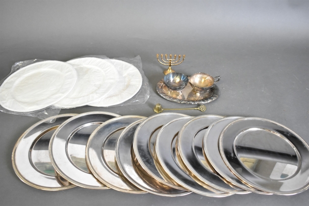 12979. Parti metall bl.a fat nysilver diameter 29 cm