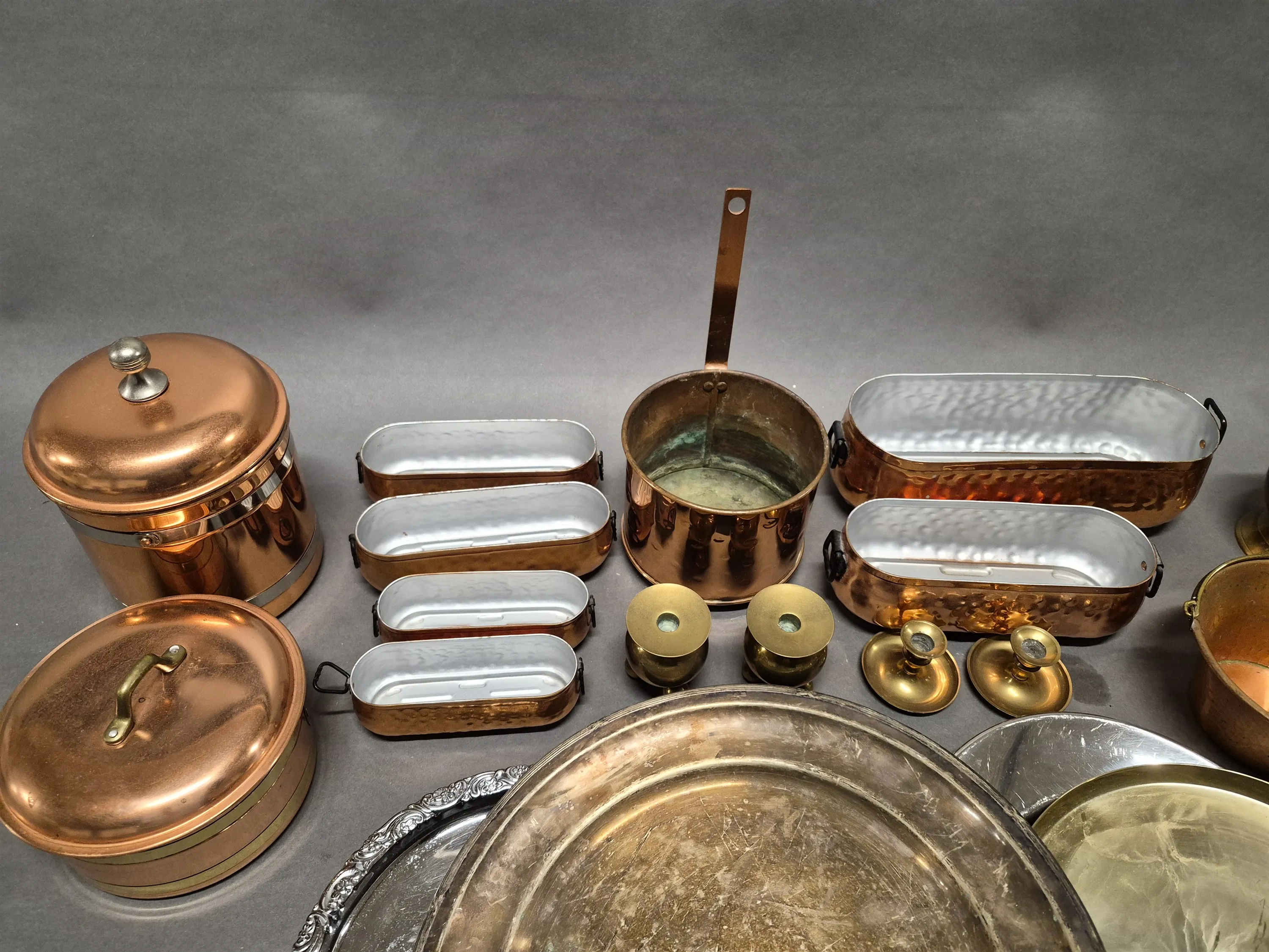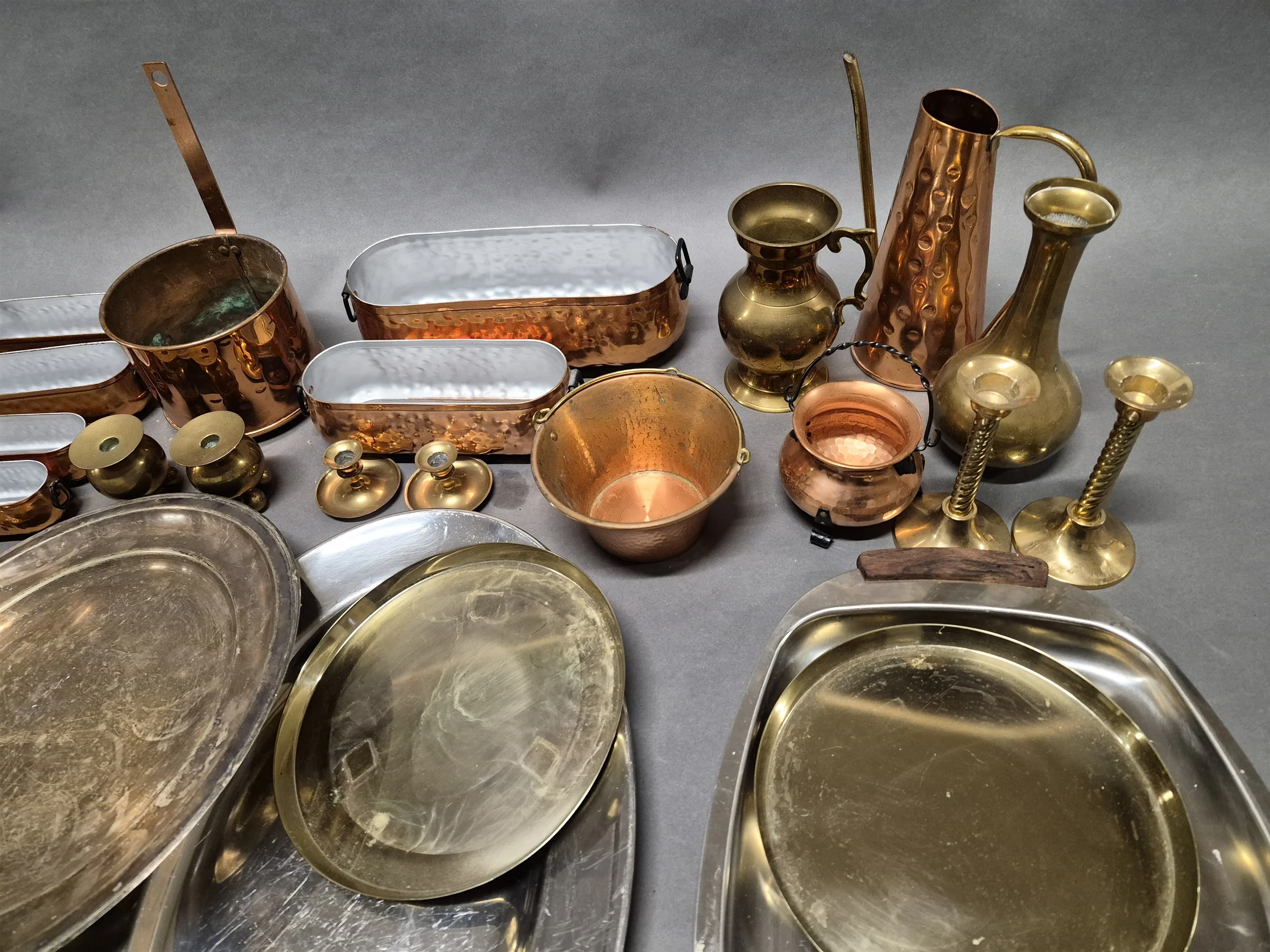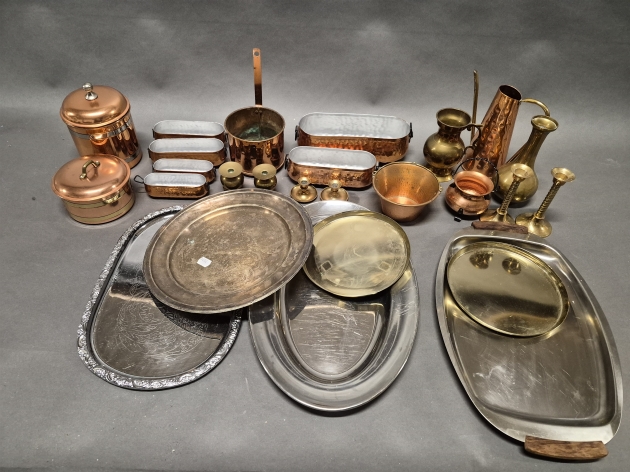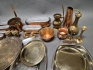 17527. Parti metall bl.a koppar föremål, högsta 19 cm