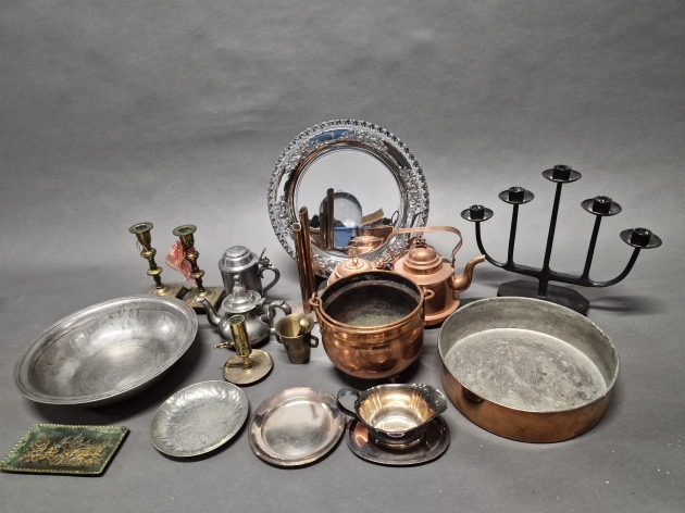 17914. Parti metall, bl.a koppar/tenn, högsta 27 cm