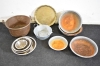 11913. Parti metall bl.a kopparbunke, diameter på kopparbunke 40 cm