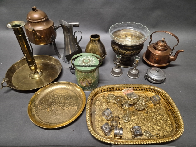 17801. Parti metall, bl.a ljusstake höjd 30 cm