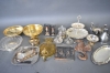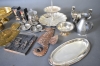 2519. Parti metall bl.a mässing & nysilver högsta 28 cm