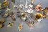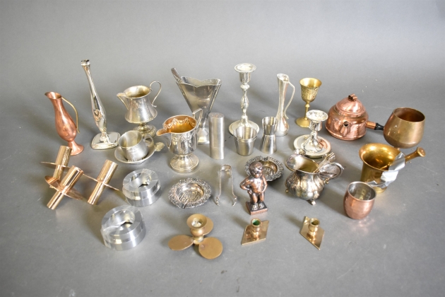 12501. Parti metall bl.a mässings mortel, högsta höjd 15 cm