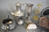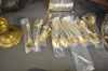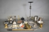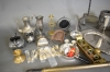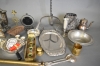 389. Parti metall bl.a mässing, tenn & nysilver, längsta 69 cm