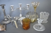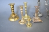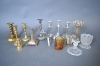 8802. Parti metall bl.a mässingsljusstakar och glasföremål, högsta höjd 20 cm