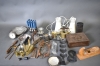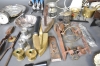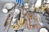 404. Parti metall, bl.a nysilver & mässing, största mått 35 cm