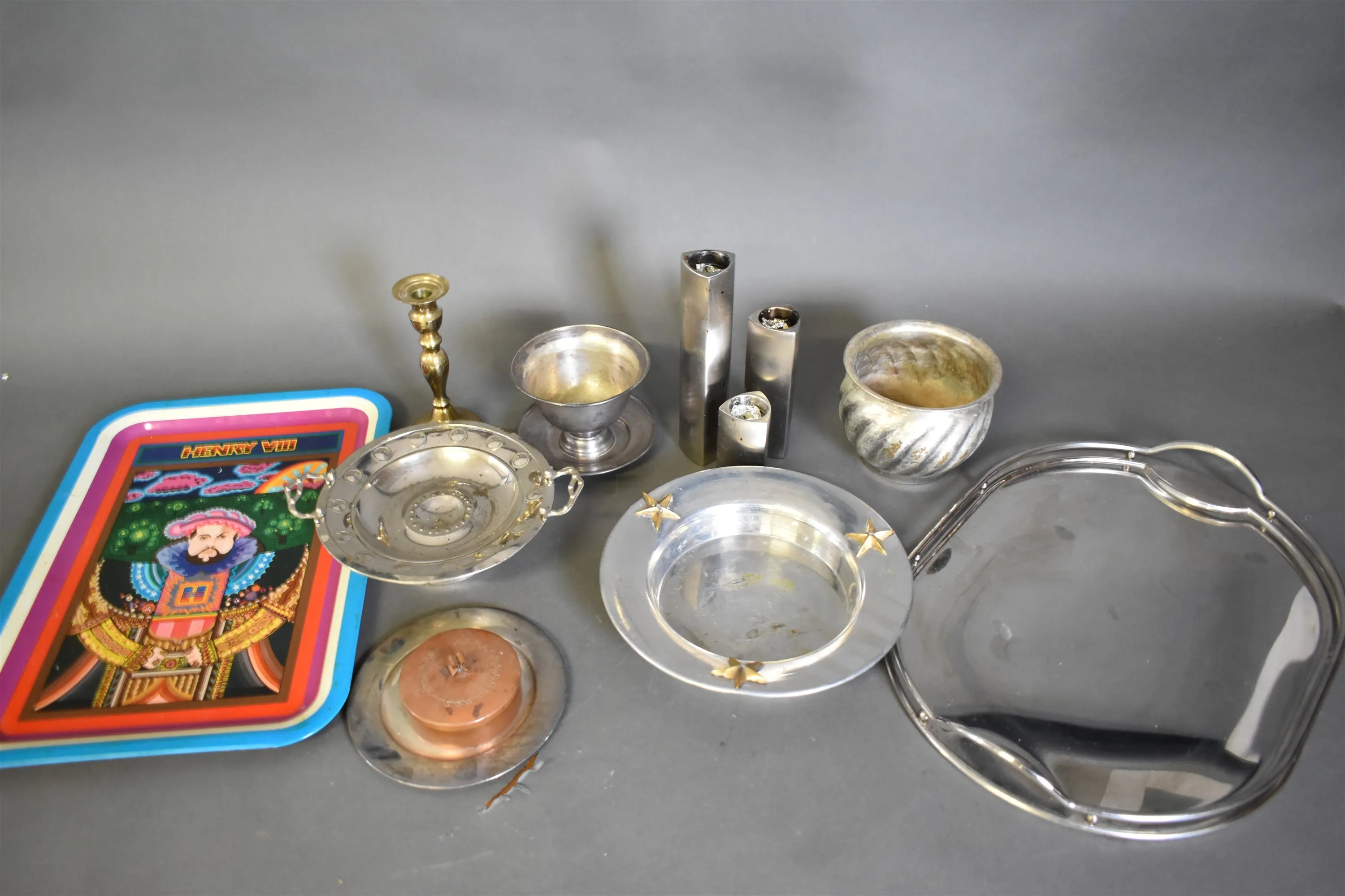 5356. Parti metall bl.a serveringsbrickor längsta 40 cm